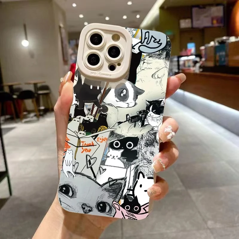 Comprar Funda de teléfono para iPhone 17 16 15 14 13 12 11 Pro Max 16 Plus 16E 17 Air Cute Cool Cat Candy funda de silicona TPU suave