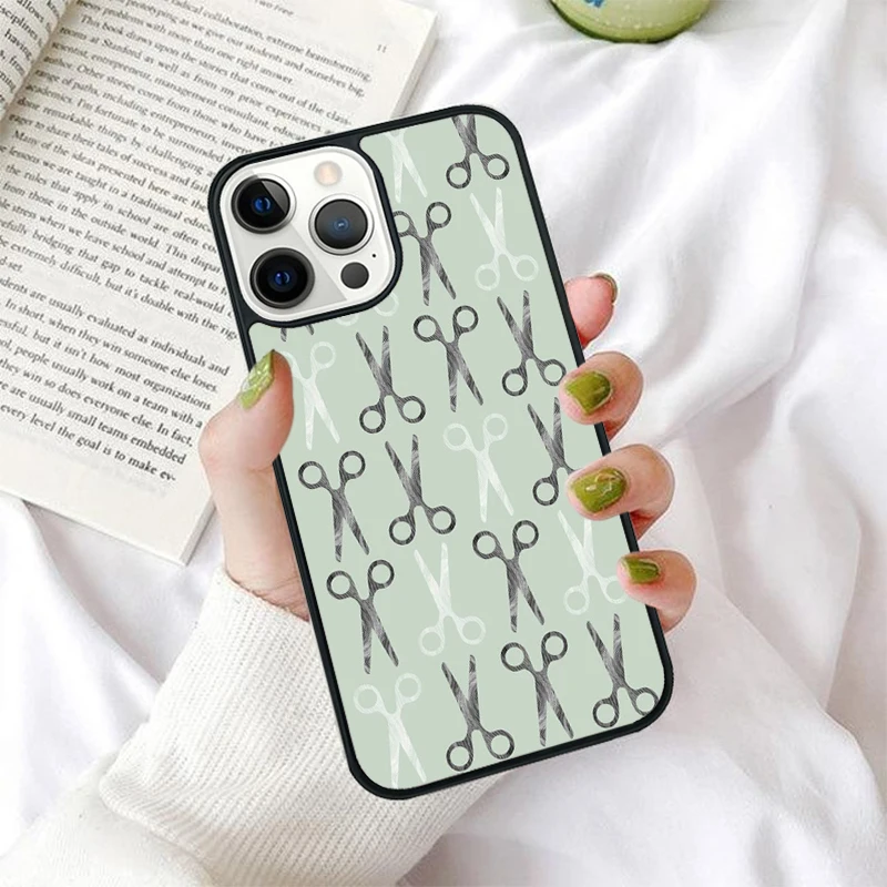 Funda de teléfono para iPhone 17 Air 16 Coque 15 14 12 13 PLUS 11 PRO MAX, tijeras de peluquero