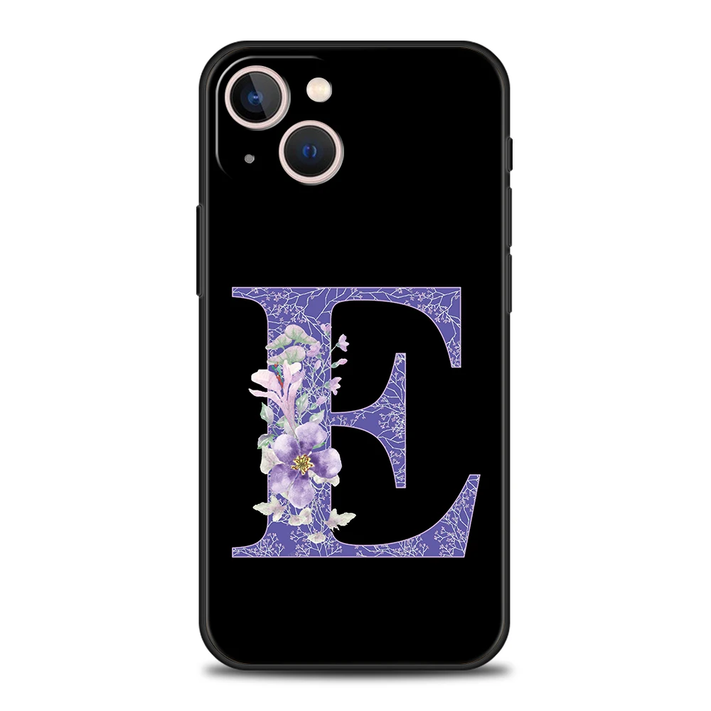 Funda de teléfono para iPhone 17 Air 16E 16 11 15 14 Pro MAX 12 13 7 8 Plus X XR XS SE 2022, funda con letra inicial Retro flor púrpura