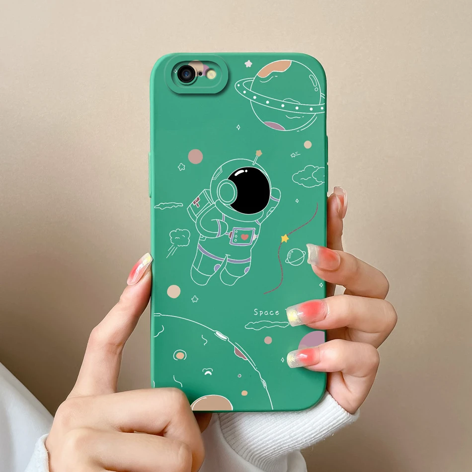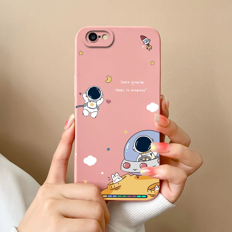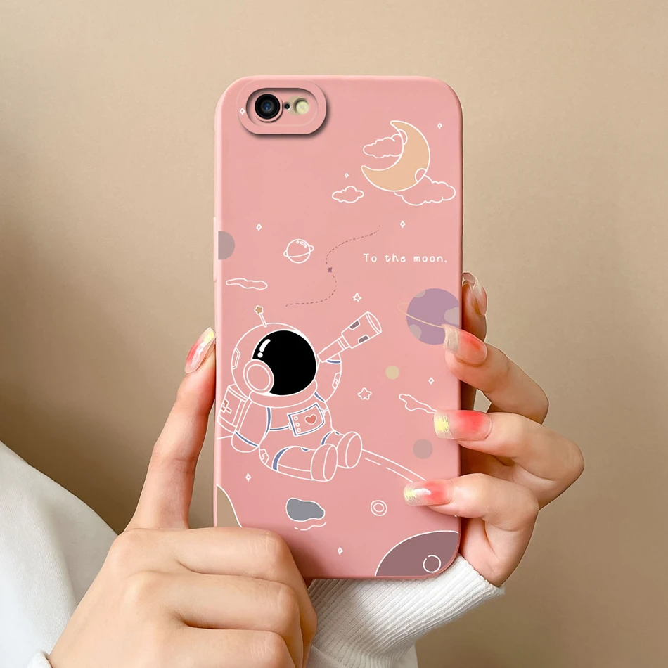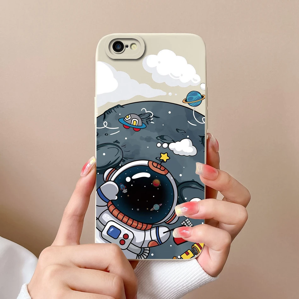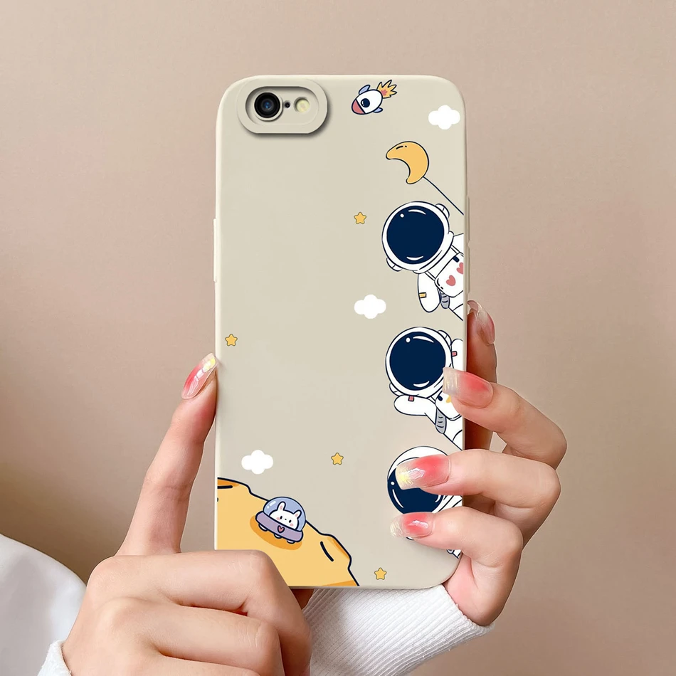Comprar Funda de teléfono para iPhone 6 Plus Fun Astronaut, protección de cámara, cubierta trasera para iPhone 6 6 Plus 6 +, parachoques de silicona líquida suave