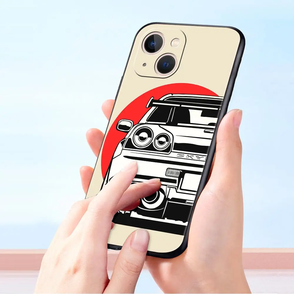 Comprar Funda de teléfono japonesa GTR Racing Car JDM, cubierta de silicona negra para Apple iPhone 11, 15, 14 Pro MAX, 12, 13, 7, 8 Plus, X, XR, XS, MAX, SE