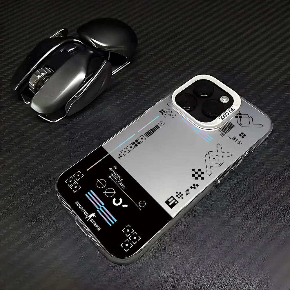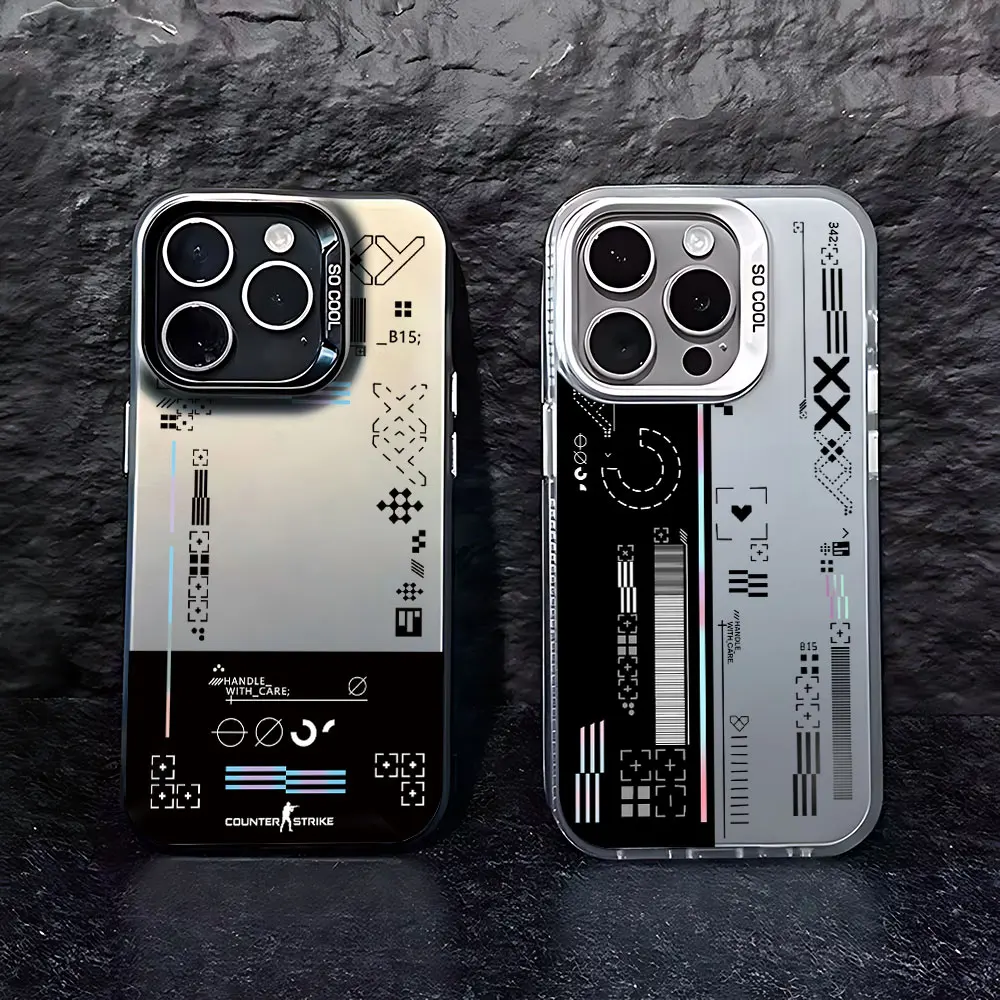 Funda de teléfono de juego de moda novedosa para iPhone 16 15 14 13 12 11 Pro Max X XR XS 8 7 Plus SE2 cubierta trasera mate plateada láser a prueba de golpes