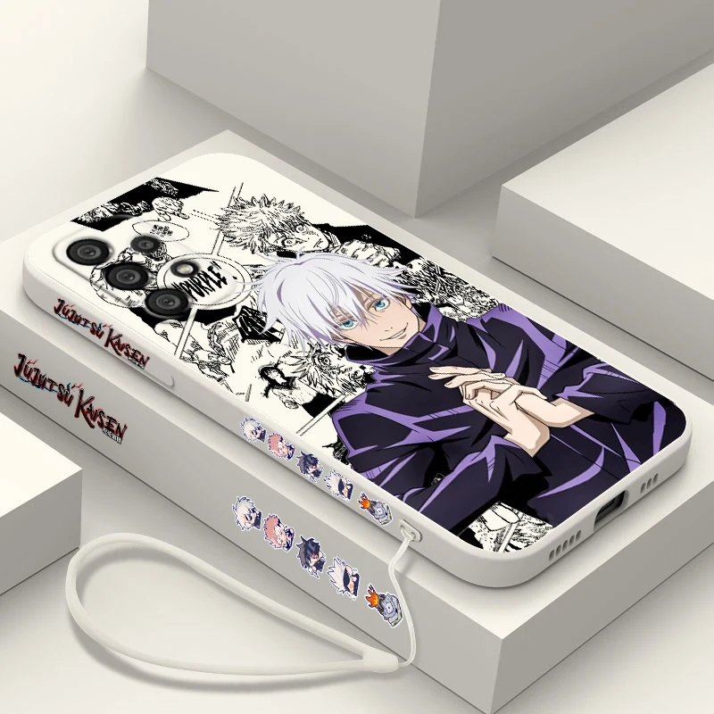 Comprar Funda de teléfono Jujutsu Kaisen Gojo Satoru para Samsung A73 A53 A33 A52 A32 A71 A51 A21S A50 A30 5G Funda de cuerda izquierda líquida
