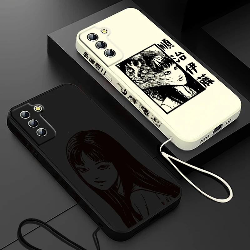 Funda de teléfono Junji Ito Tomie Kawakami para Samsung Galaxy S24 S23 S22 S21 S20 Pro FE Plus Ultra líquida cubierta de cuerda izquierda