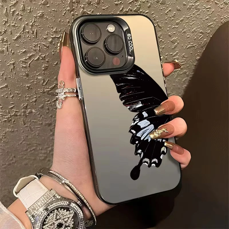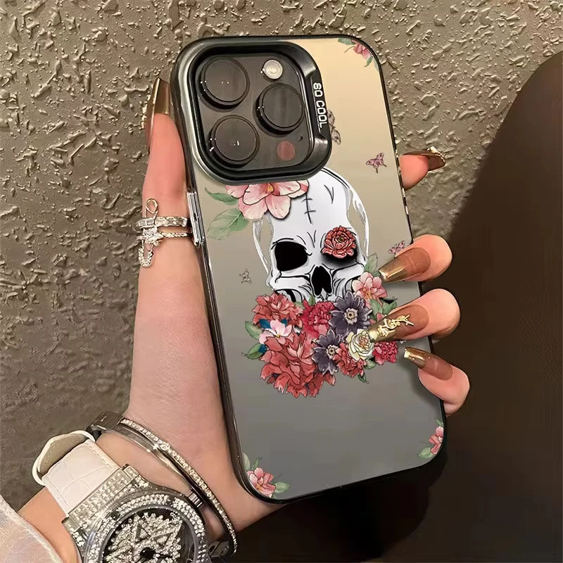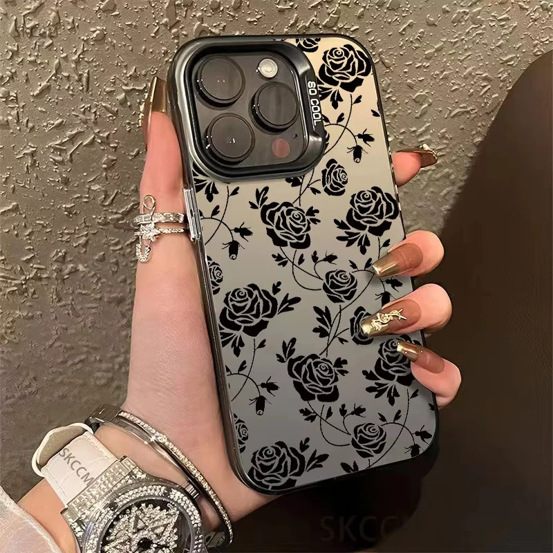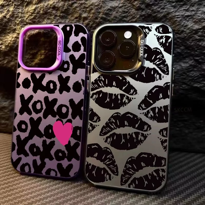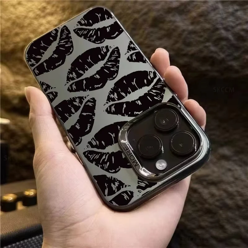 Funda de teléfono con labio negro de estilo gótico para iPhone 15 14 13 12 11 Pro Max XS X XR 7 8 Plus SE 2020 Mini cubierta de silicona dura a prueba de golpes