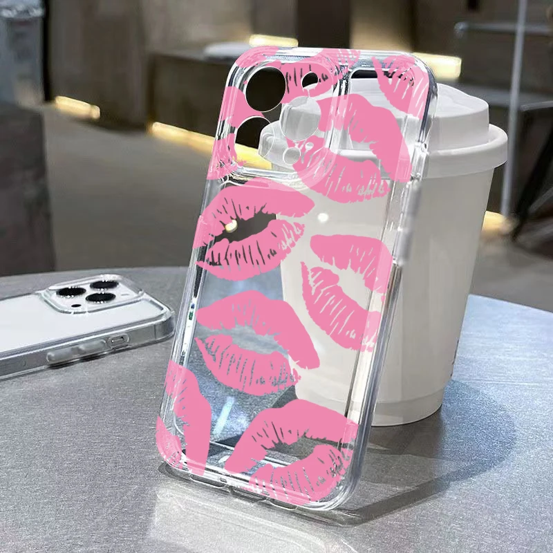 Funda de teléfono con labios y flores rosas y corazón del Día de San Valentín para Samsung Galaxy A36 A35 A34 A33 A55 A16 S25 FE S24 S23 S22 Ultra Plus
