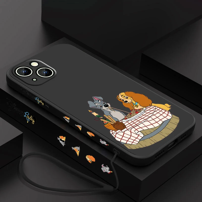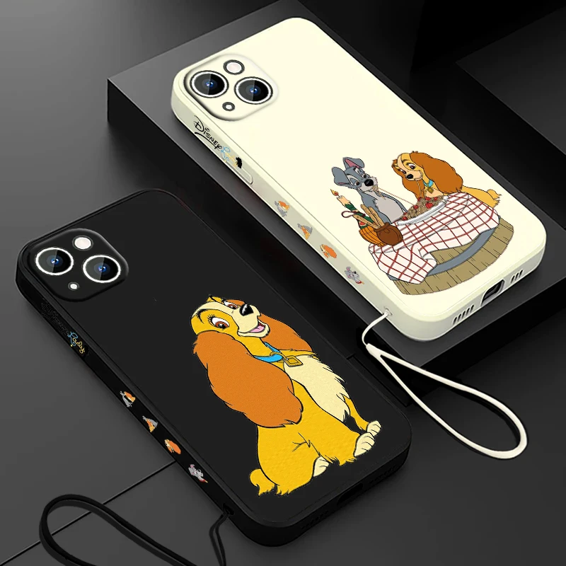 Comprar Funda de teléfono Lady And The Tramp para Apple iPhone 15 14 13 12 11 Pro Max Plus 8 7 SE Liquid Left Rope Capa Cover