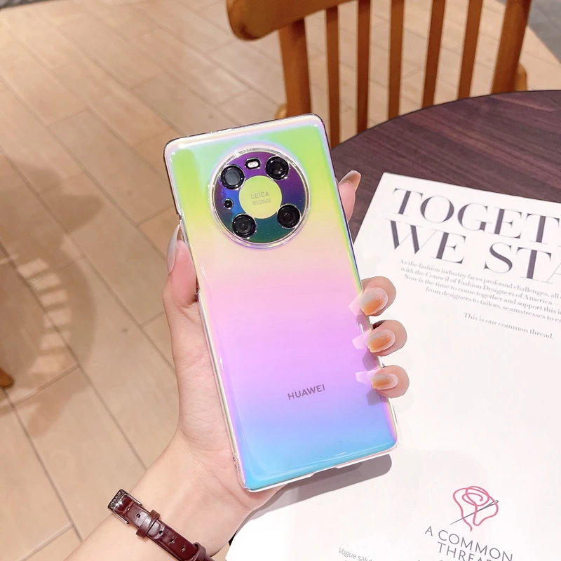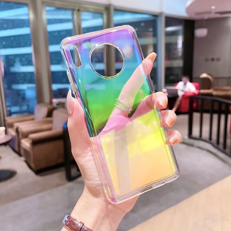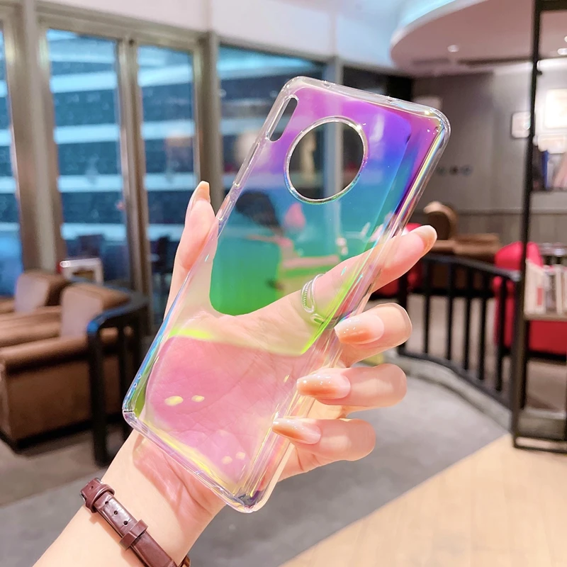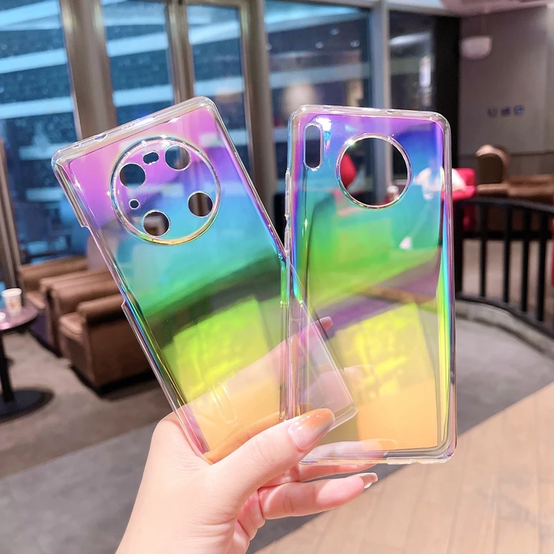 Comprar Funda de teléfono láser de lujo para HUAWEI P30 P40 P50 Mate 30 40 Pro Lite 5G P Smart 2021 Y8P, carcasa trasera de PC transparente