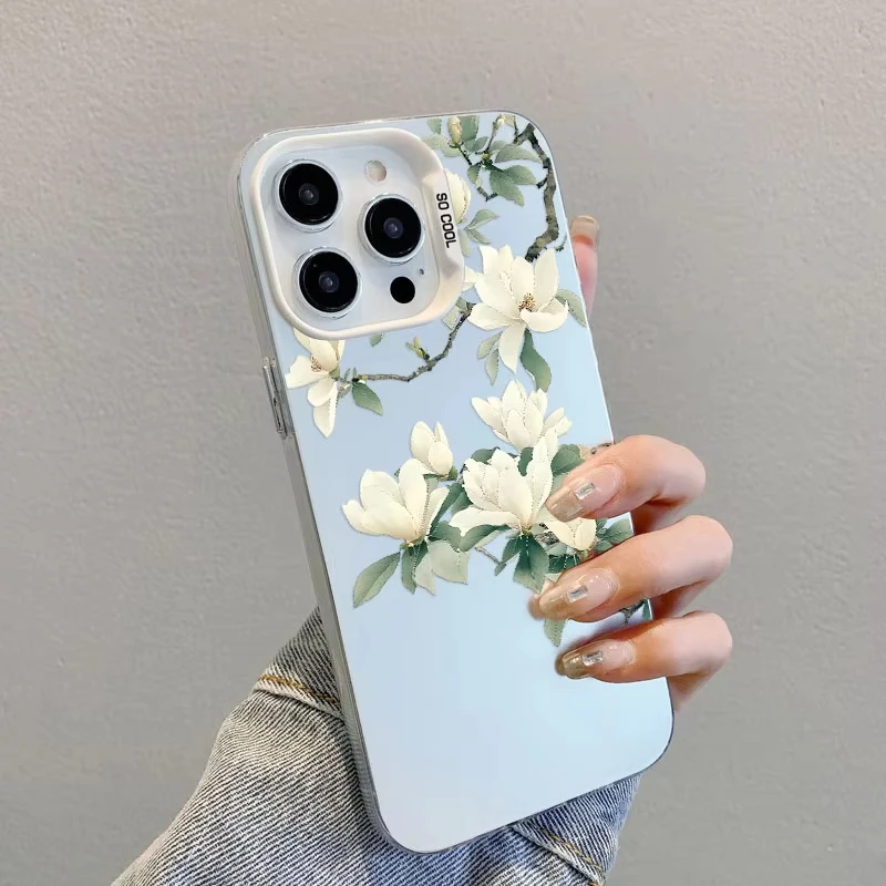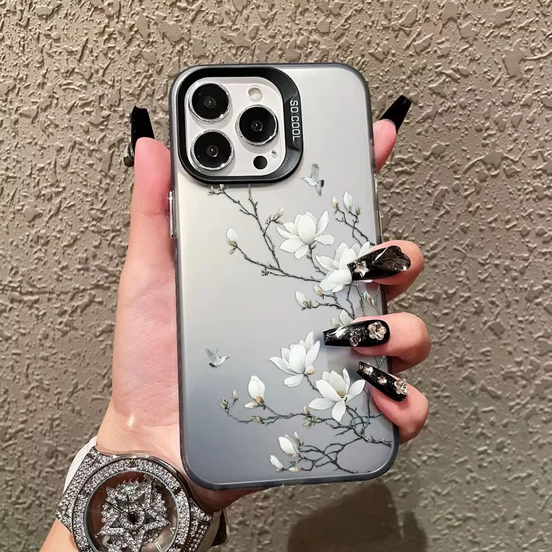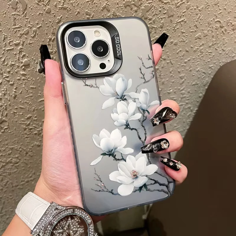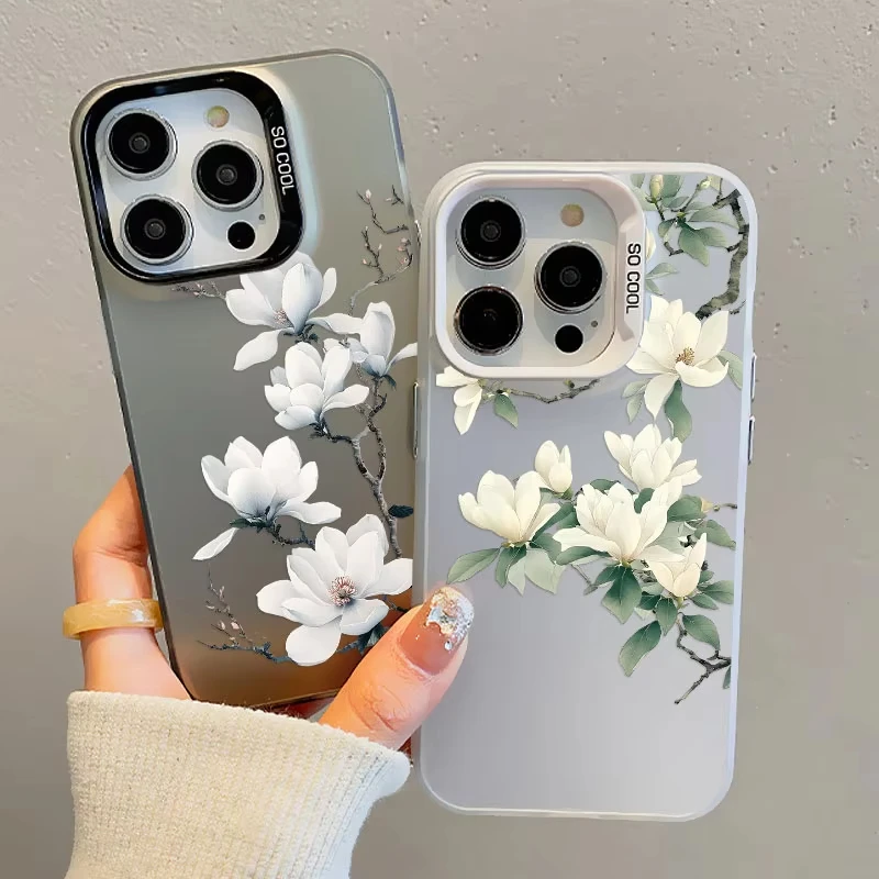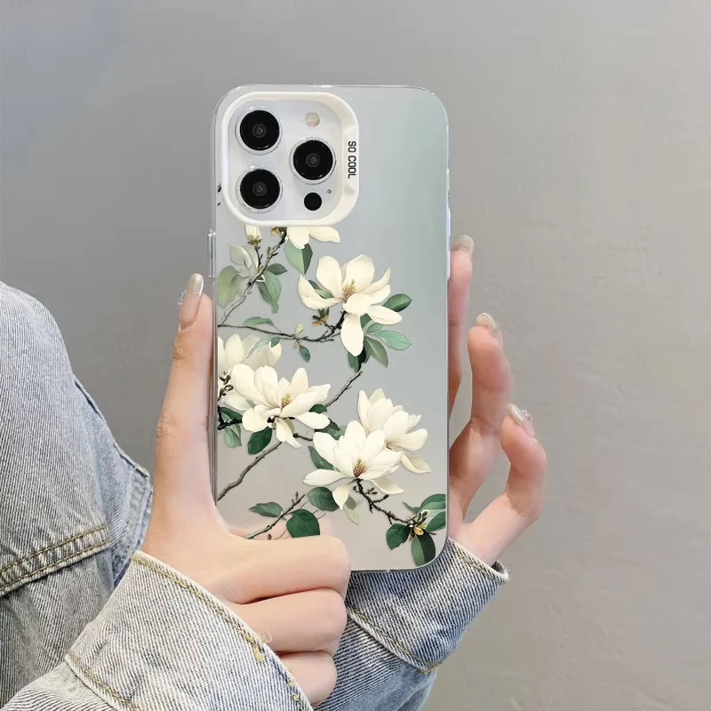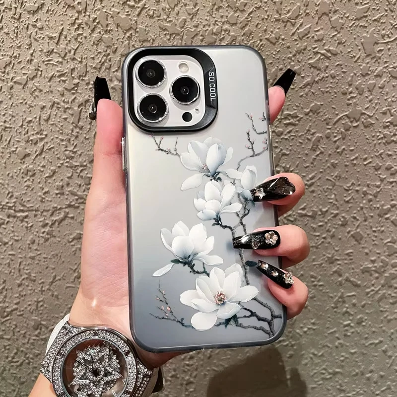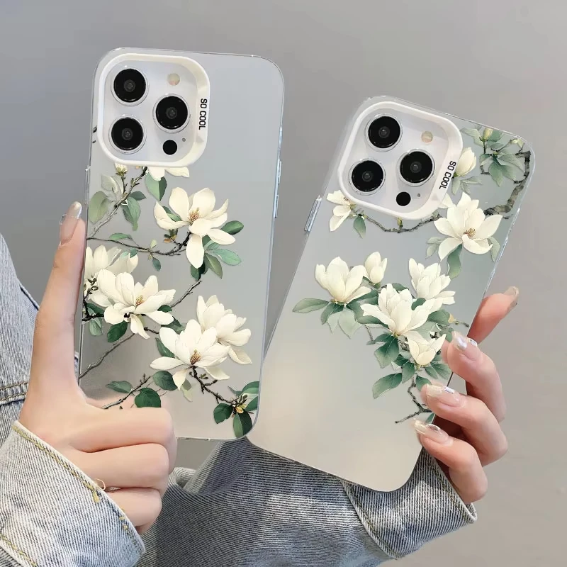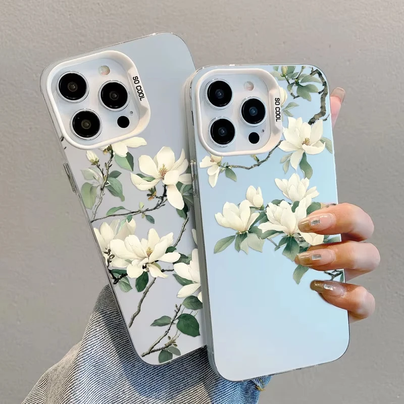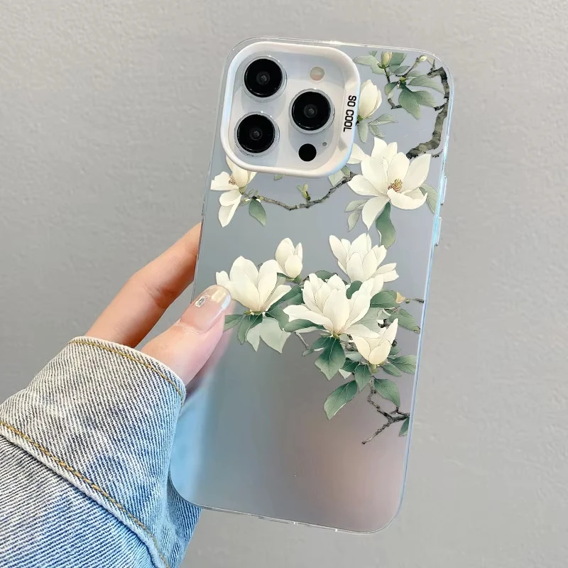 Funda de teléfono con láser de orquídeas blanca para iPhone 12 11 Pro Max 16 Pro Max Plus, funda de teléfono 15 14 13 Pro Max Plus 13 Mini a prueba de golpes
