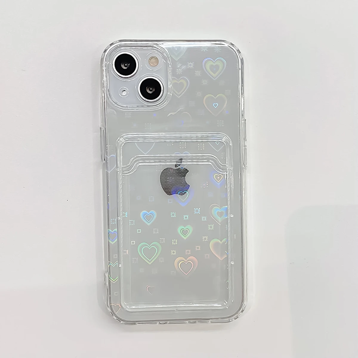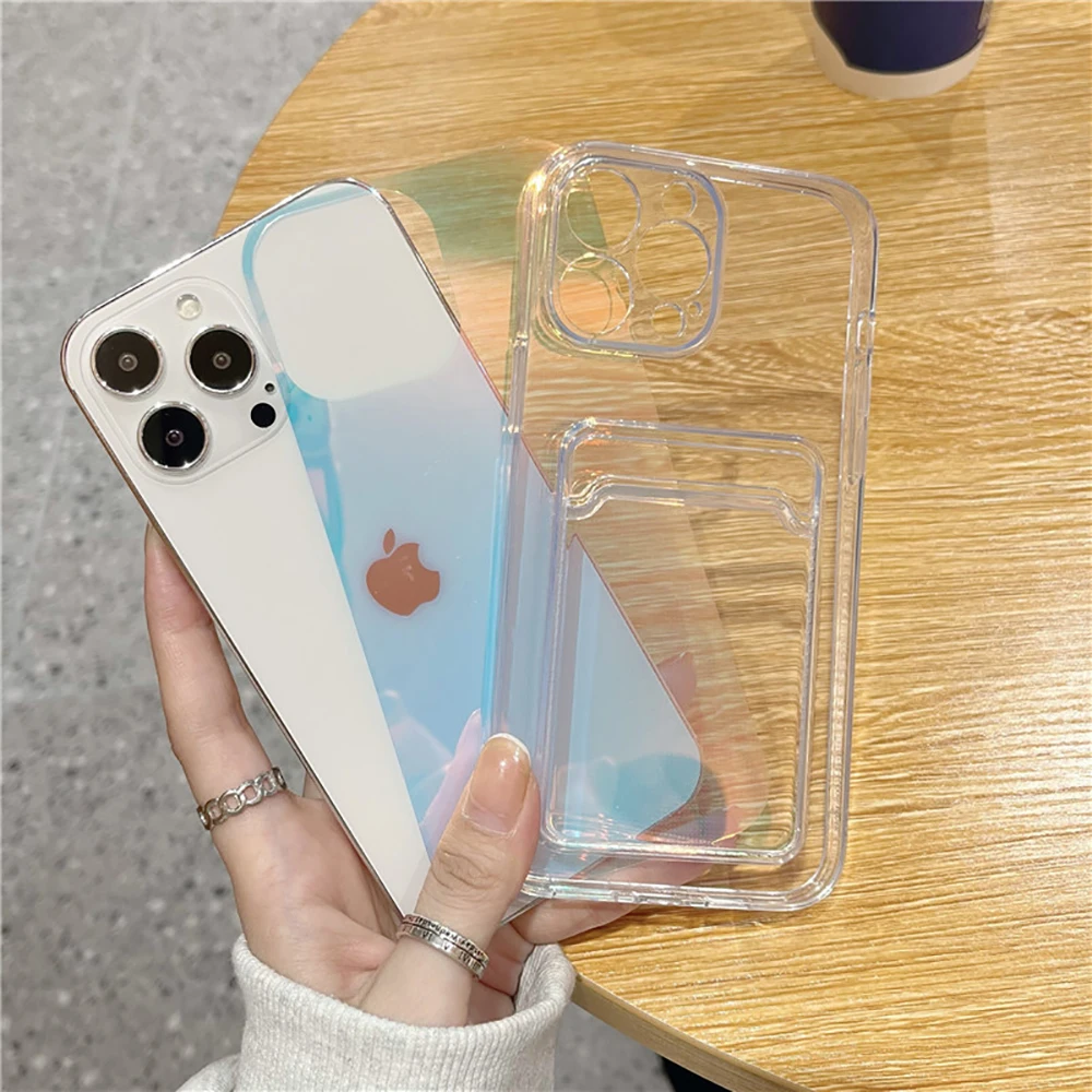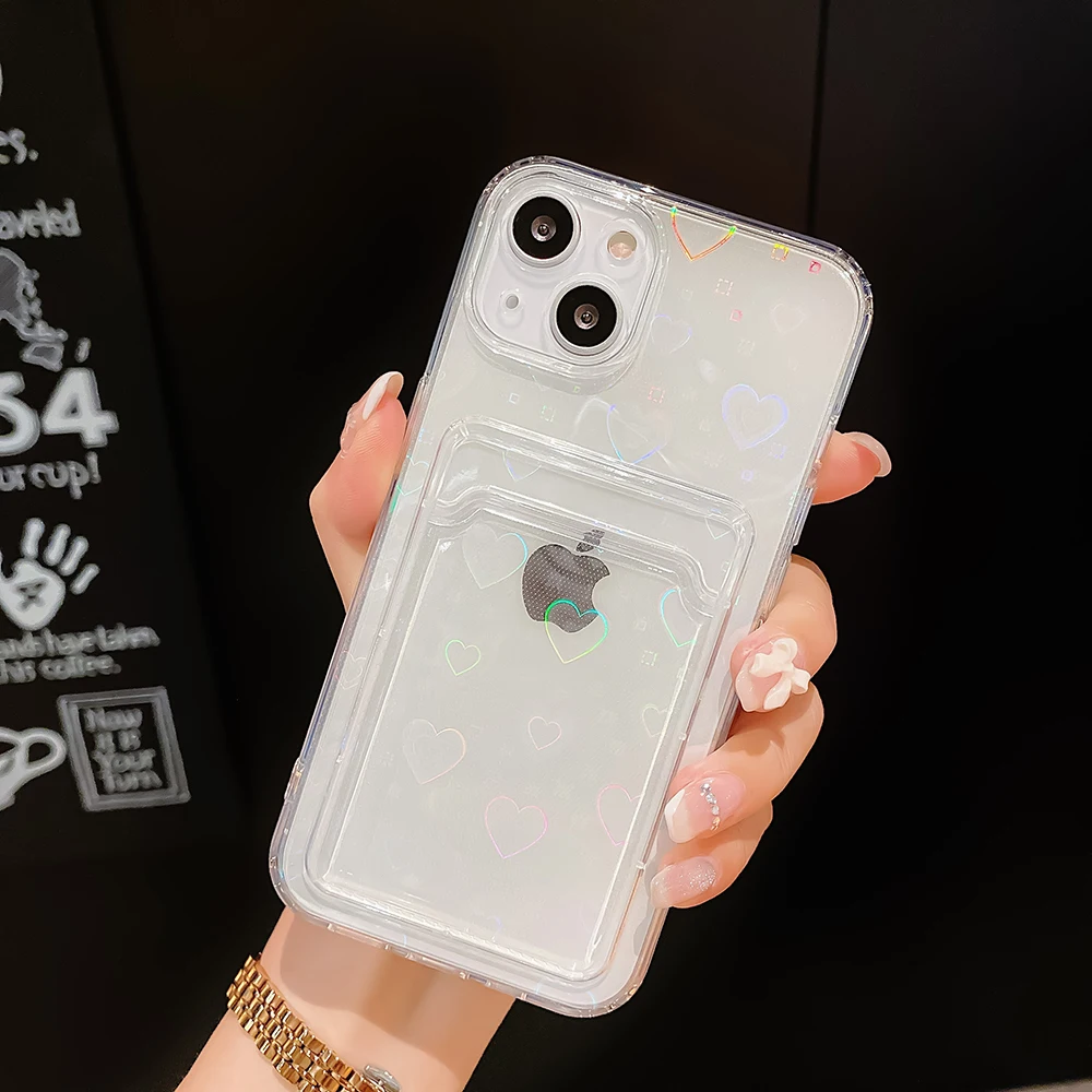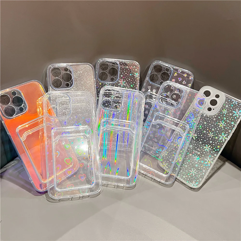 Funda de teléfono con láser transparente Love Gradient para iPhone 13 11 12 14 15 Pro XS Max X XR 7 8 Plus, funda de silicona suave con soporte para tarjetas