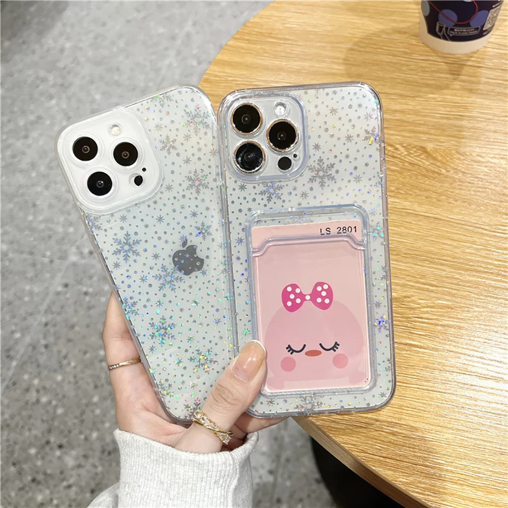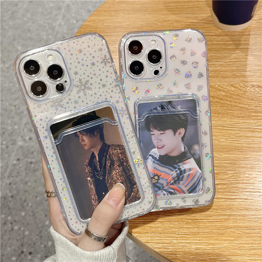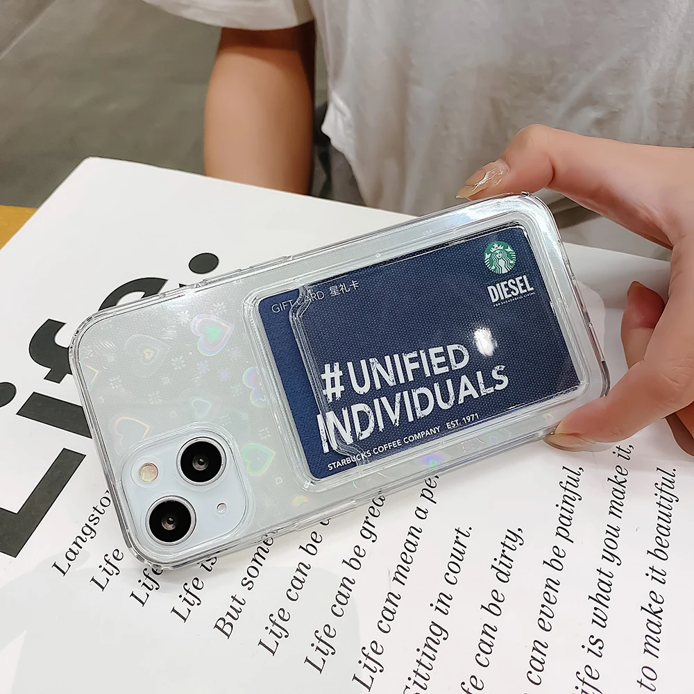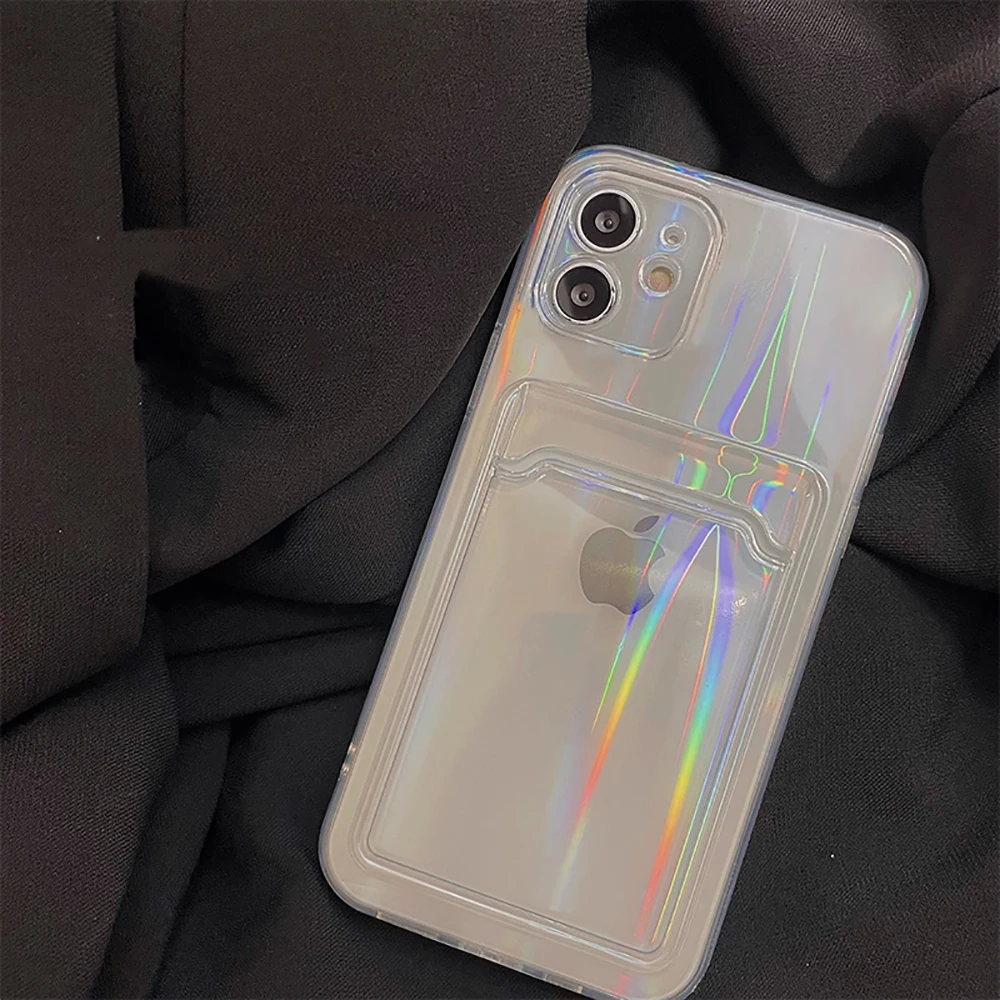 Funda de teléfono con láser transparente Love Gradient para iPhone 13 11 12 14 15 Pro XS Max X XR 7 8 Plus, funda de silicona suave con soporte para tarjetas
