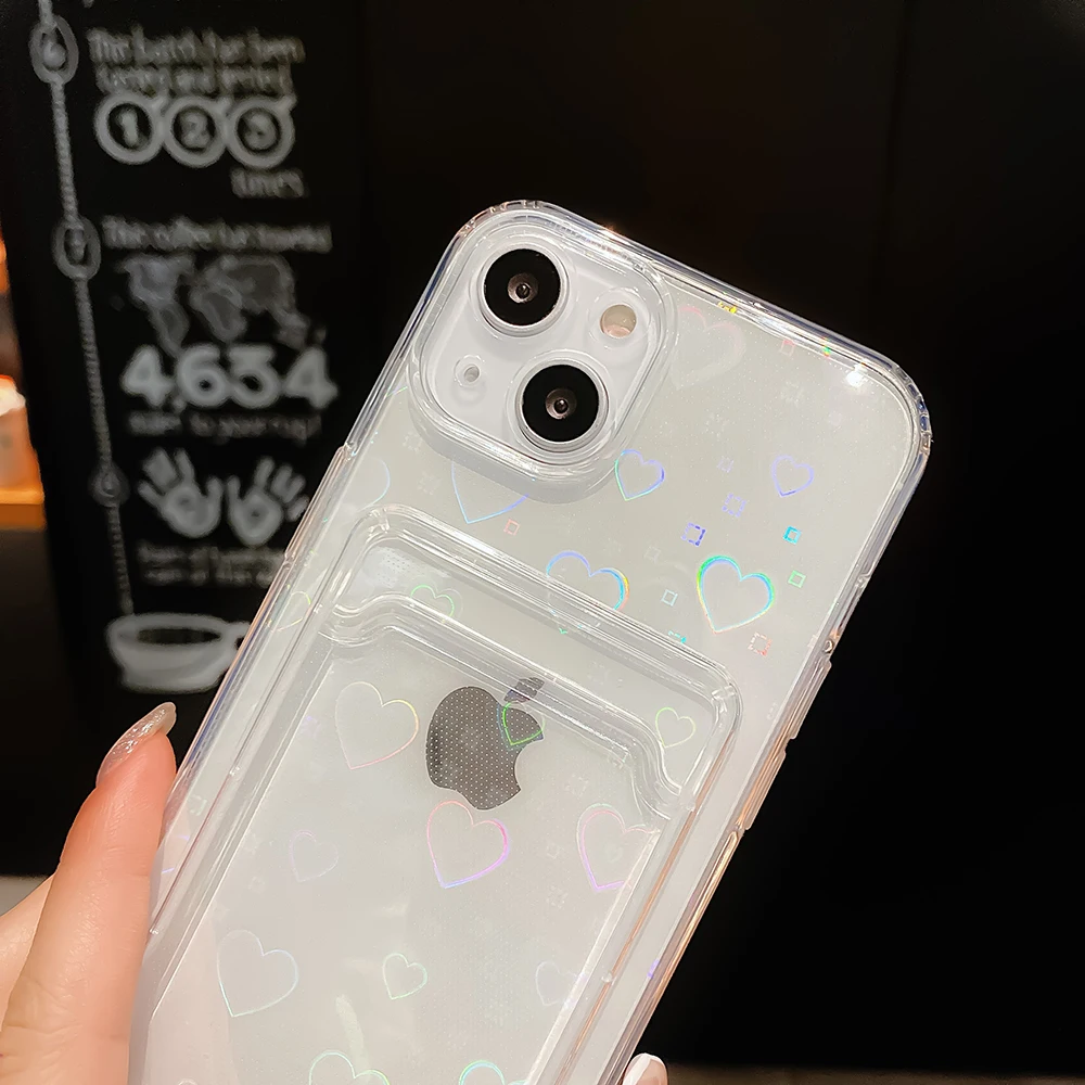 Funda de teléfono con láser transparente Love Gradient para iPhone 13 11 12 14 15 Pro XS Max X XR 7 8 Plus, funda de silicona suave con soporte para tarjetas