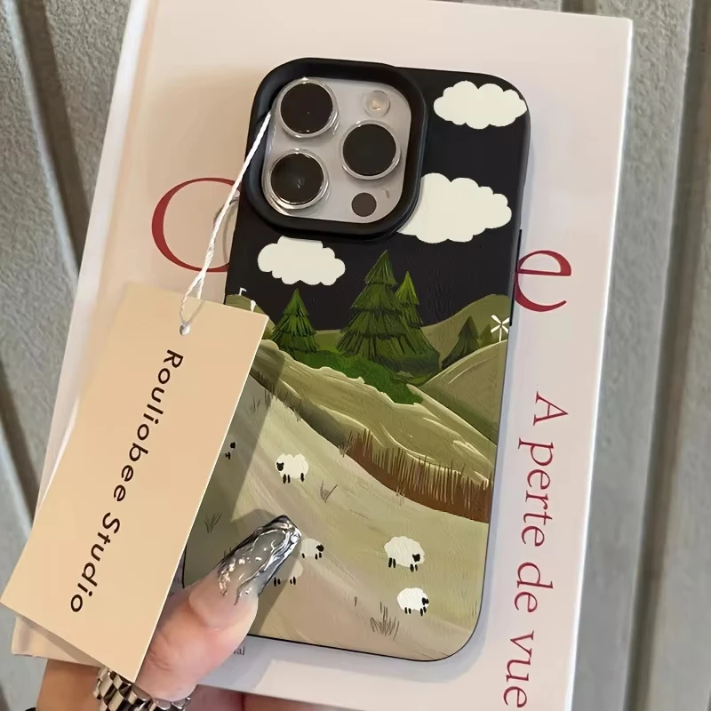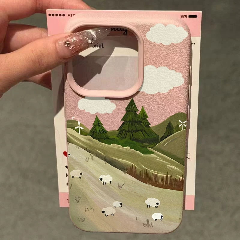 Funda de teléfono Lawn Sheep Lichee Patterm para iPhone 17 Pro Max 16 15 14 13 12 11 15Pro 16 Plus 17Air cubierta de silicona a prueba de golpes