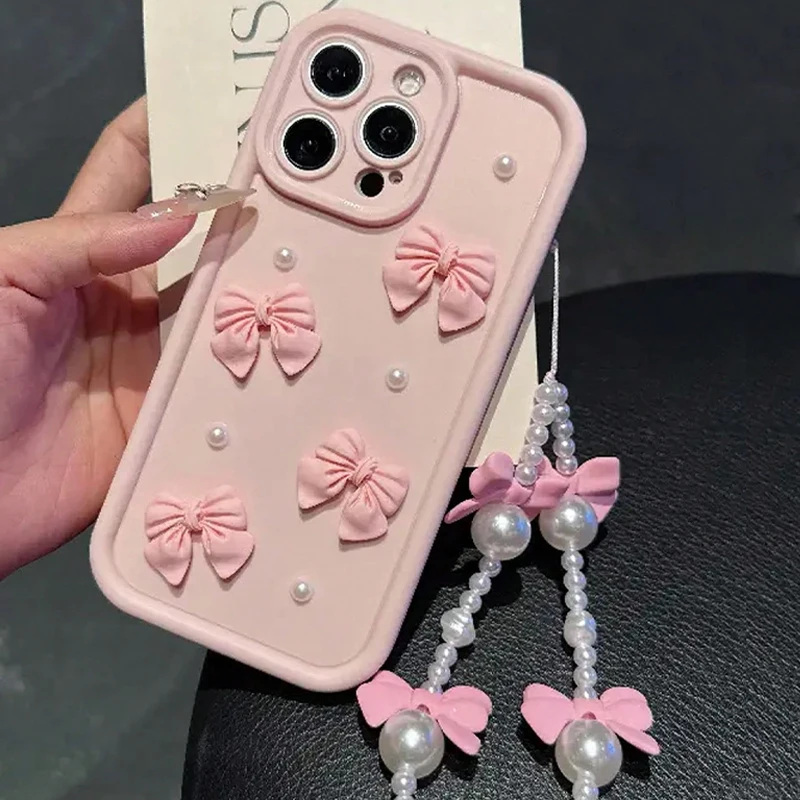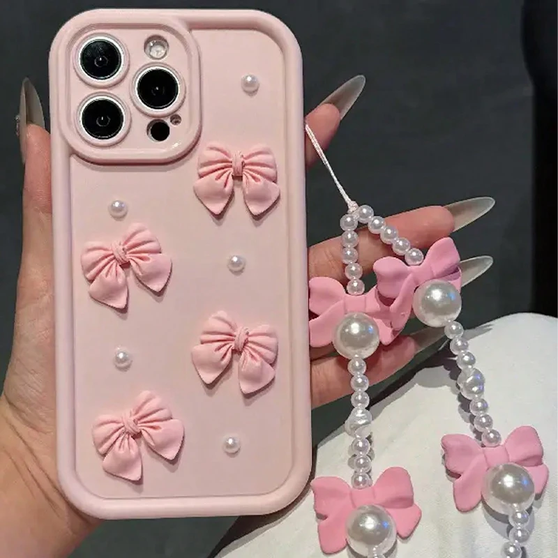 Funda de teléfono con perlas y lazo 3D de Corea para Samsung Galaxy S25 S24 Ultra Plus S23 FE A16 A06 A26 A32 A56 A54 con funda suave con cordón