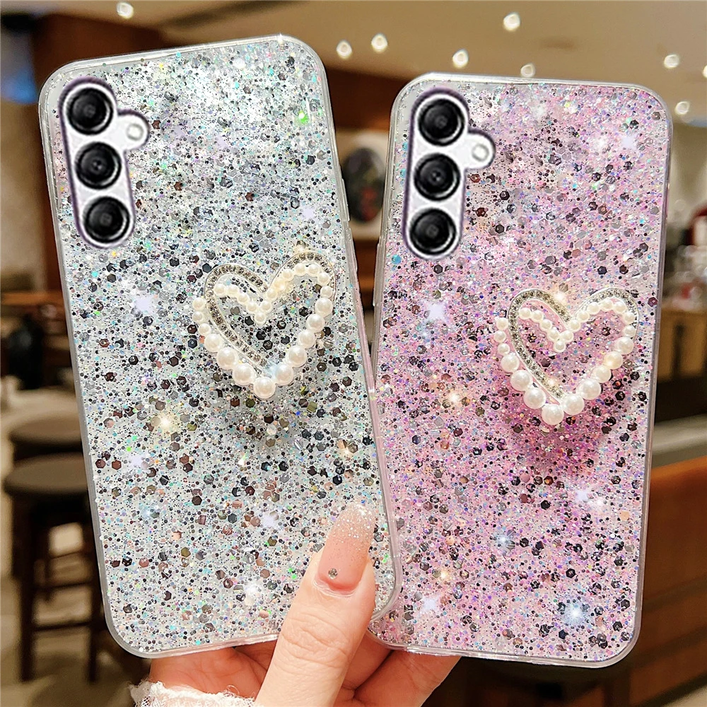 Lujo 3D perla amor corazón brillo lentejuelas funda de teléfono para Samsung A05S A25 A35 A55 A14 A24 A34 A54 A13 A23 A33 A22 A32 A52 cubierta