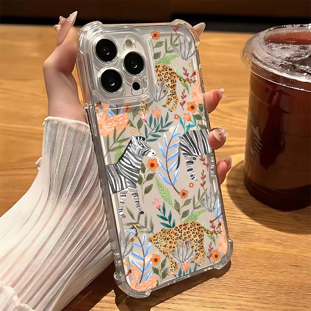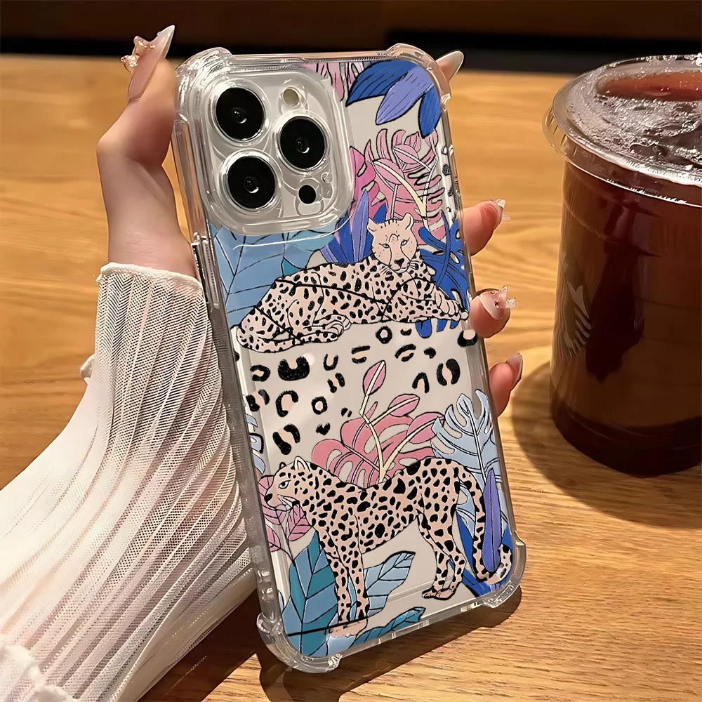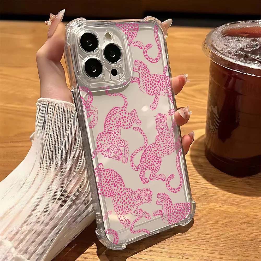 Funda de teléfono de leopardo rosa a la moda para iPhone 16 15 14 13 12 11 Mini Pro Max XR XSMax 7 8 Plus SE2020, funda transparente a prueba de golpes