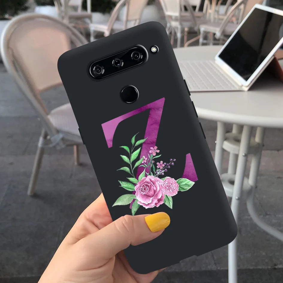 Para Coque LG V40 ThinQ funda de teléfono con estilo letras de flores funda trasera suave para LG V30 V50S ThinQ 5G parachoques de LM-V510N V50 ThinQ Capa