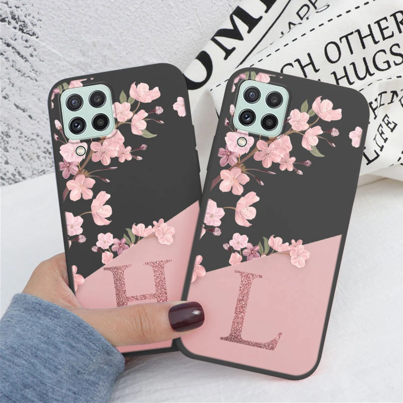 Letter Flower Phone Case For Samsung Galaxy A22 4G Shockproof TPU Bumper Soft Silicone Back Cover For Samsung A 22 Fundas Black