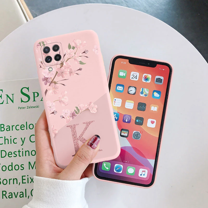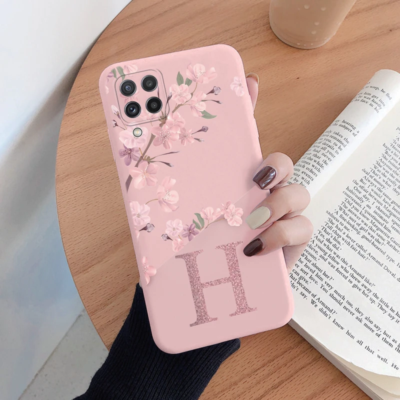 Comprar Funda de teléfono con letras y flores para Samsung Galaxy A22 4G, parachoques de TPU a prueba de golpes, funda trasera de silicona suave para Samsung A 22 Fundas negras