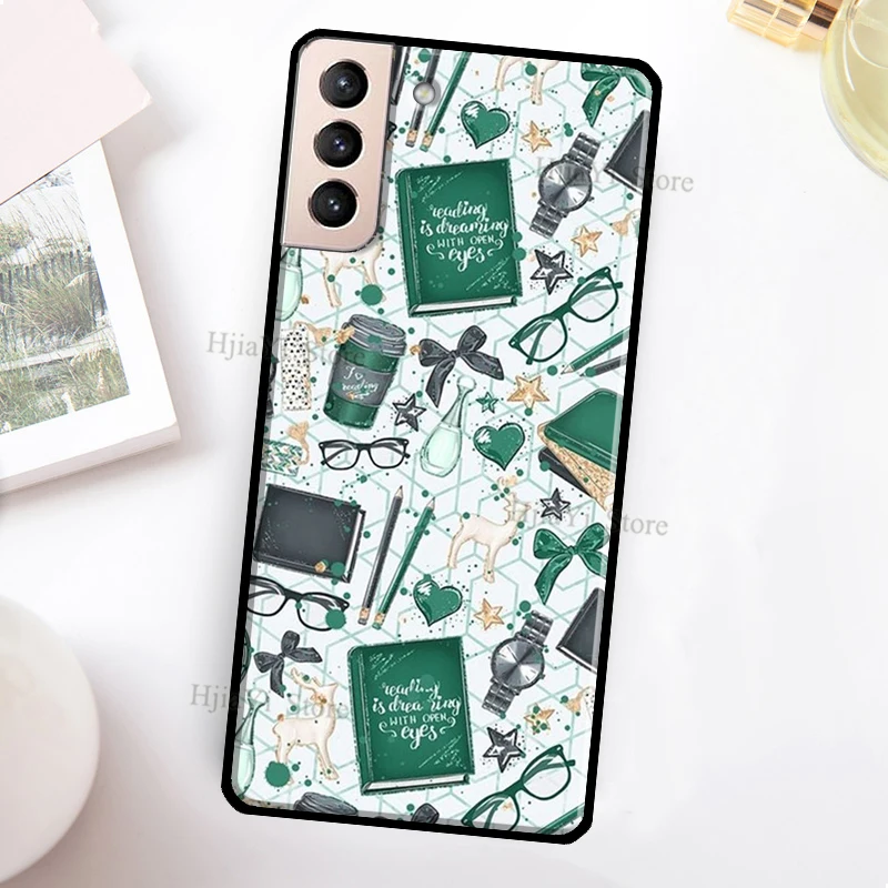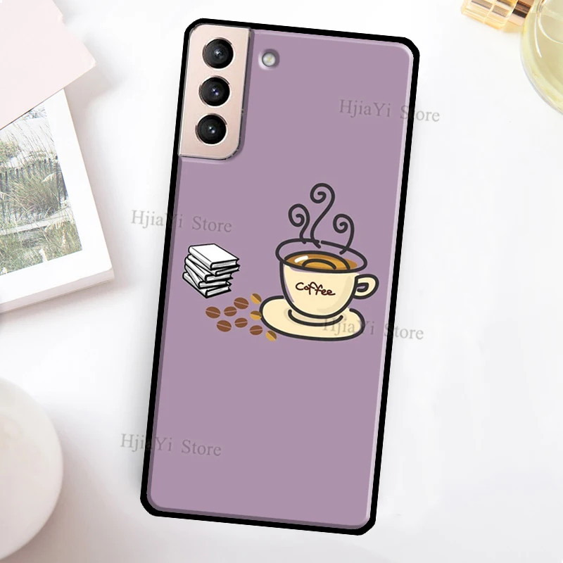 Funda de teléfono con libros y café para Samsung Galaxy S21 S22 Ultra Note 20 S20 FE S8 S9 S10 Note 10 Plus Coque