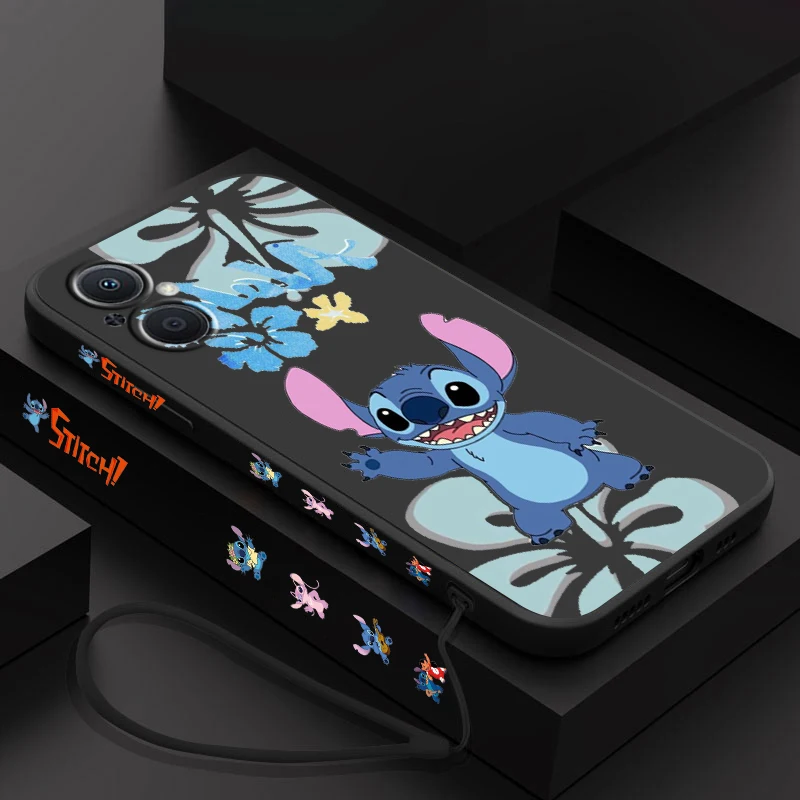 Funda de teléfono Lilo And Stitch para OPPO Find X5 X3 X2 Lite Pro Neo A5 A53 A94 4G 5G Liquid Left Rope Soft Cover