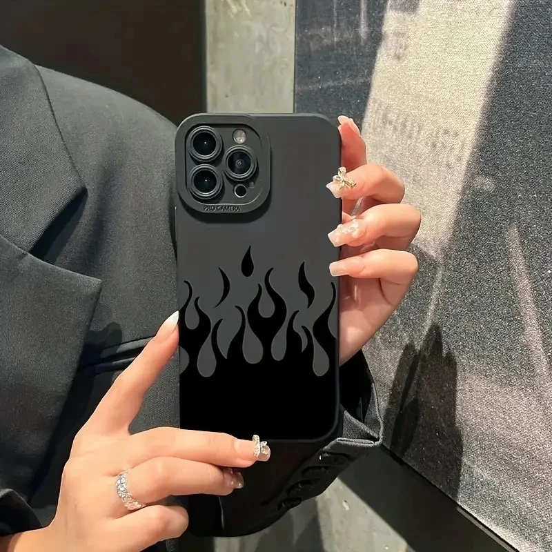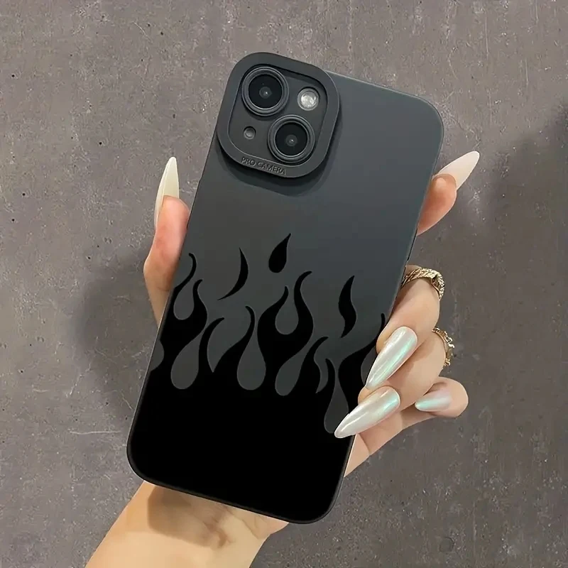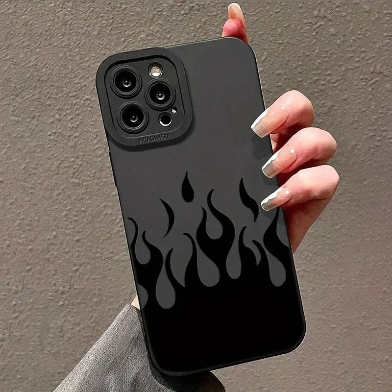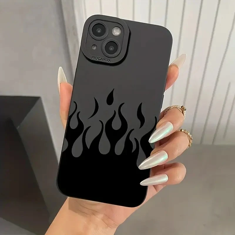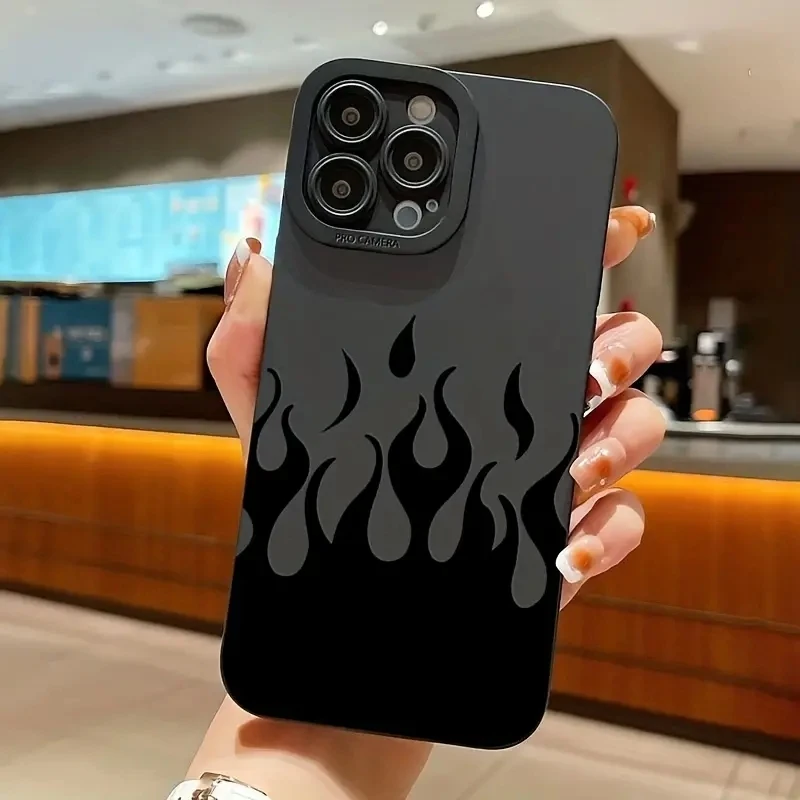 Comprar Funda de teléfono con llama negra para iPhone 14 13 11 15 Pro Max 12 Mini XS XR X 8 7 Plus SE 2022 14Pro 13Pro, funda suave mate