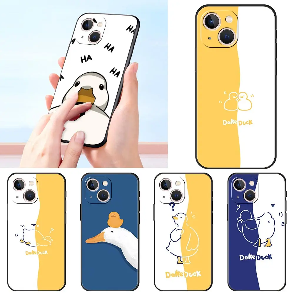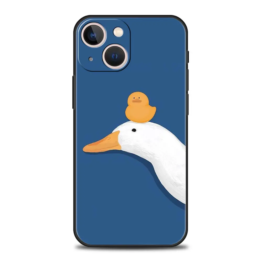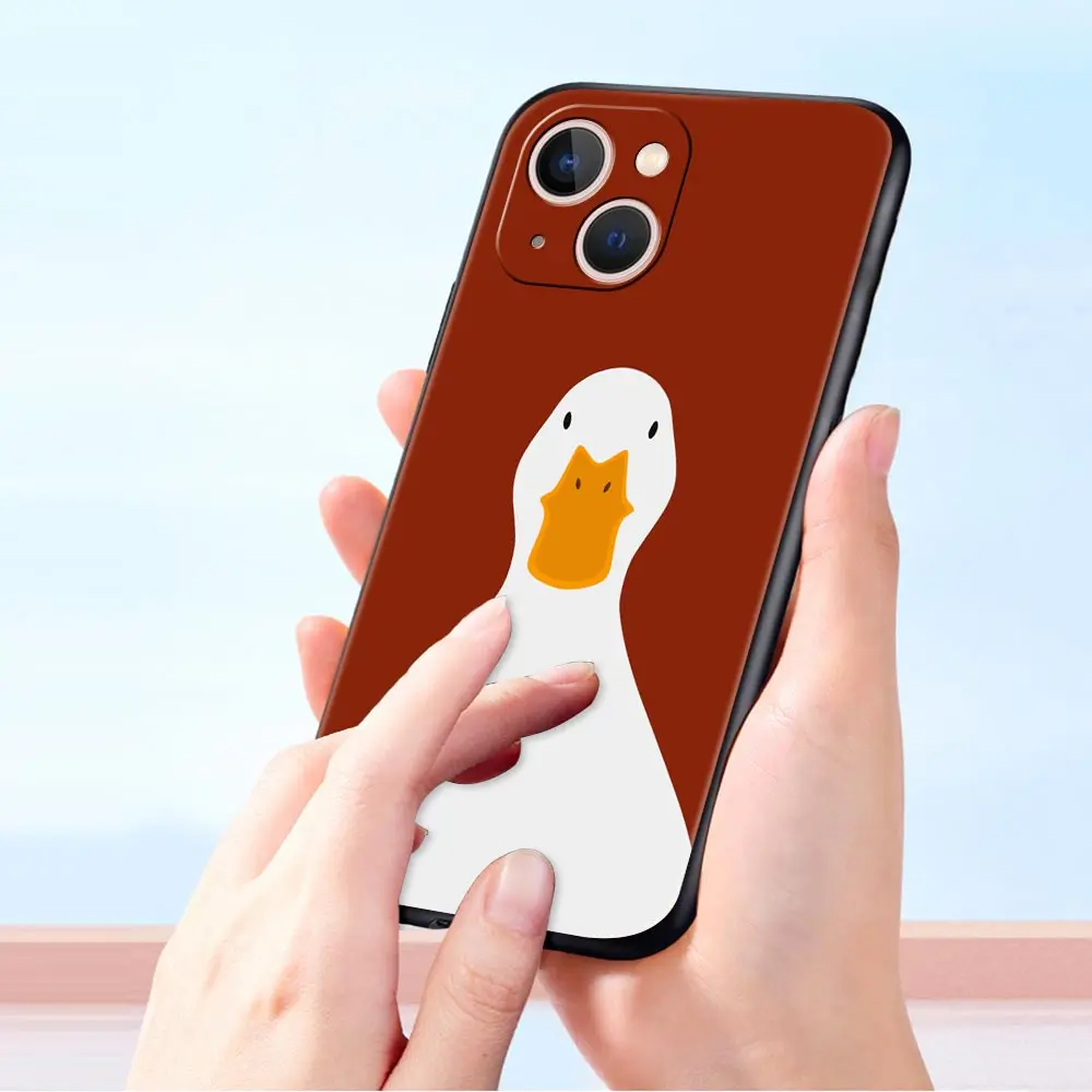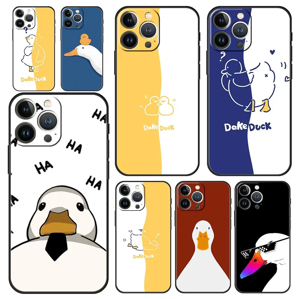 Comprar Funda de teléfono de lujo para Apple iPhone 11, 15, 14 Pro MAX, 12, 13, 7, 8 Plus, X, XR, XS, MAX, SE, Funda de silicona negra, arte de pato