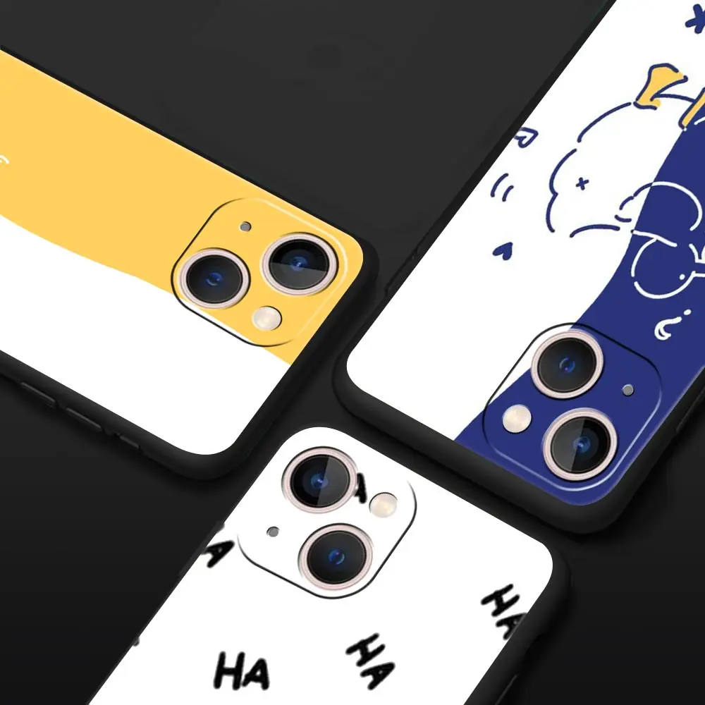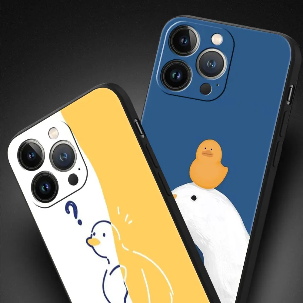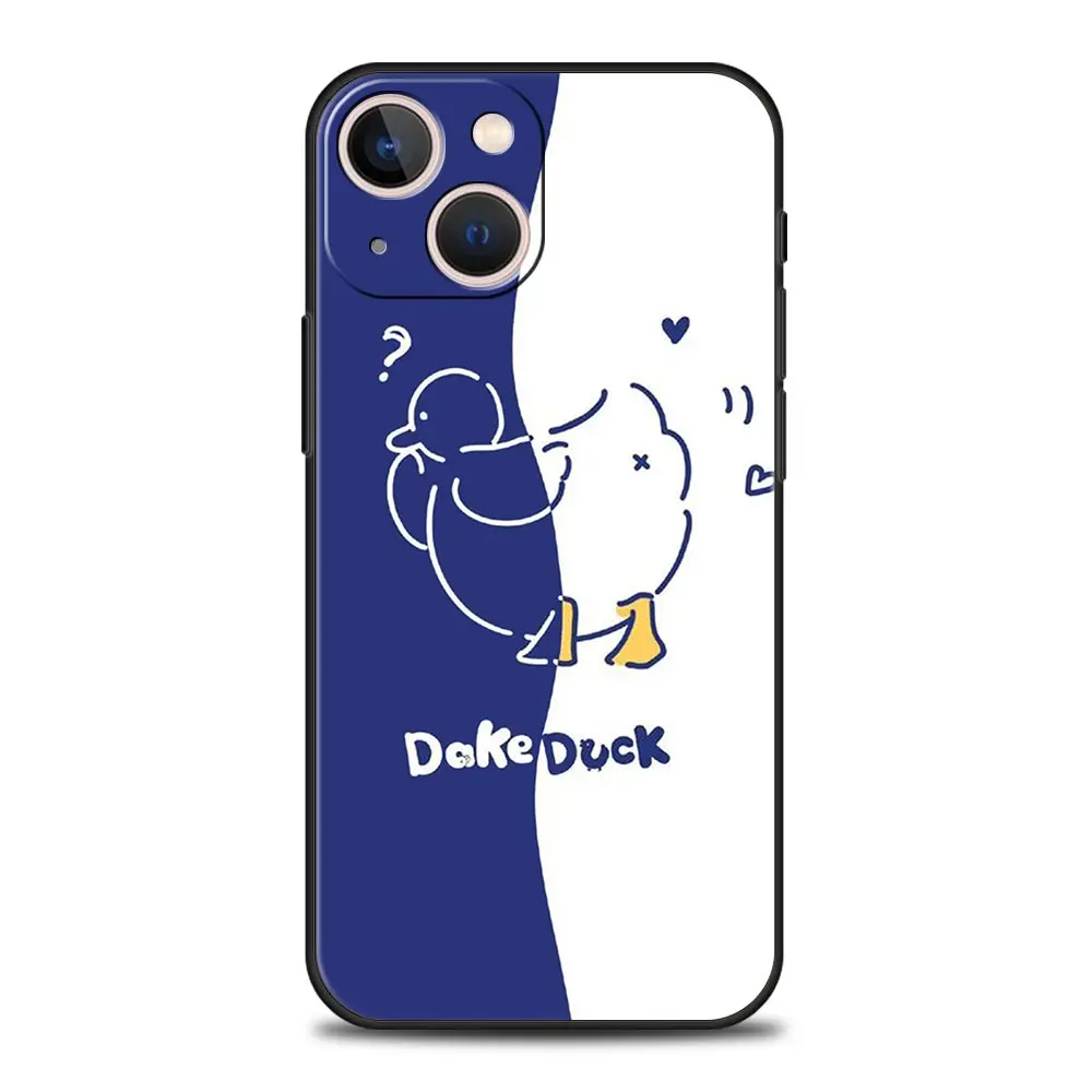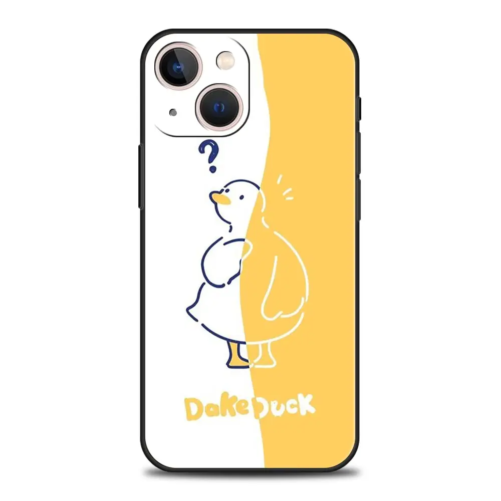 Comprar Funda de teléfono de lujo para Apple iPhone 11, 15, 14 Pro MAX, 12, 13, 7, 8 Plus, X, XR, XS, MAX, SE, Funda de silicona negra, arte de pato