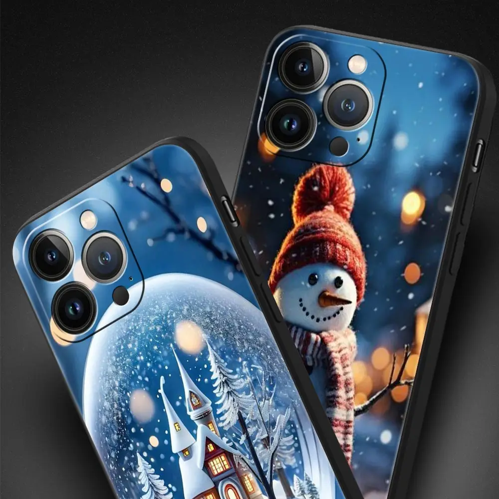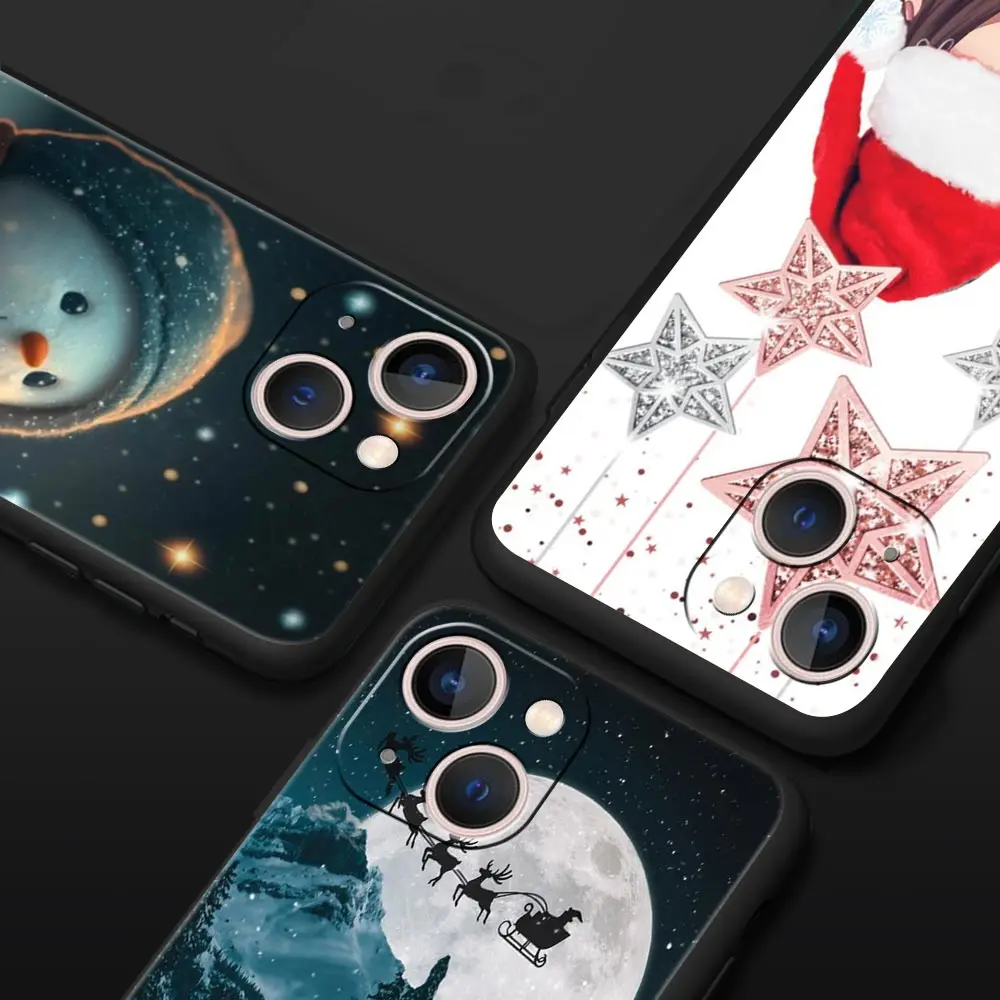 Funda de teléfono de lujo para Apple iPhone 11, 15, 14 Pro MAX, 12, 13, 7, 8 Plus, X, XR, XS, MAX, SE, Funda negra con estampado gráfico de Navidad - imagen 1