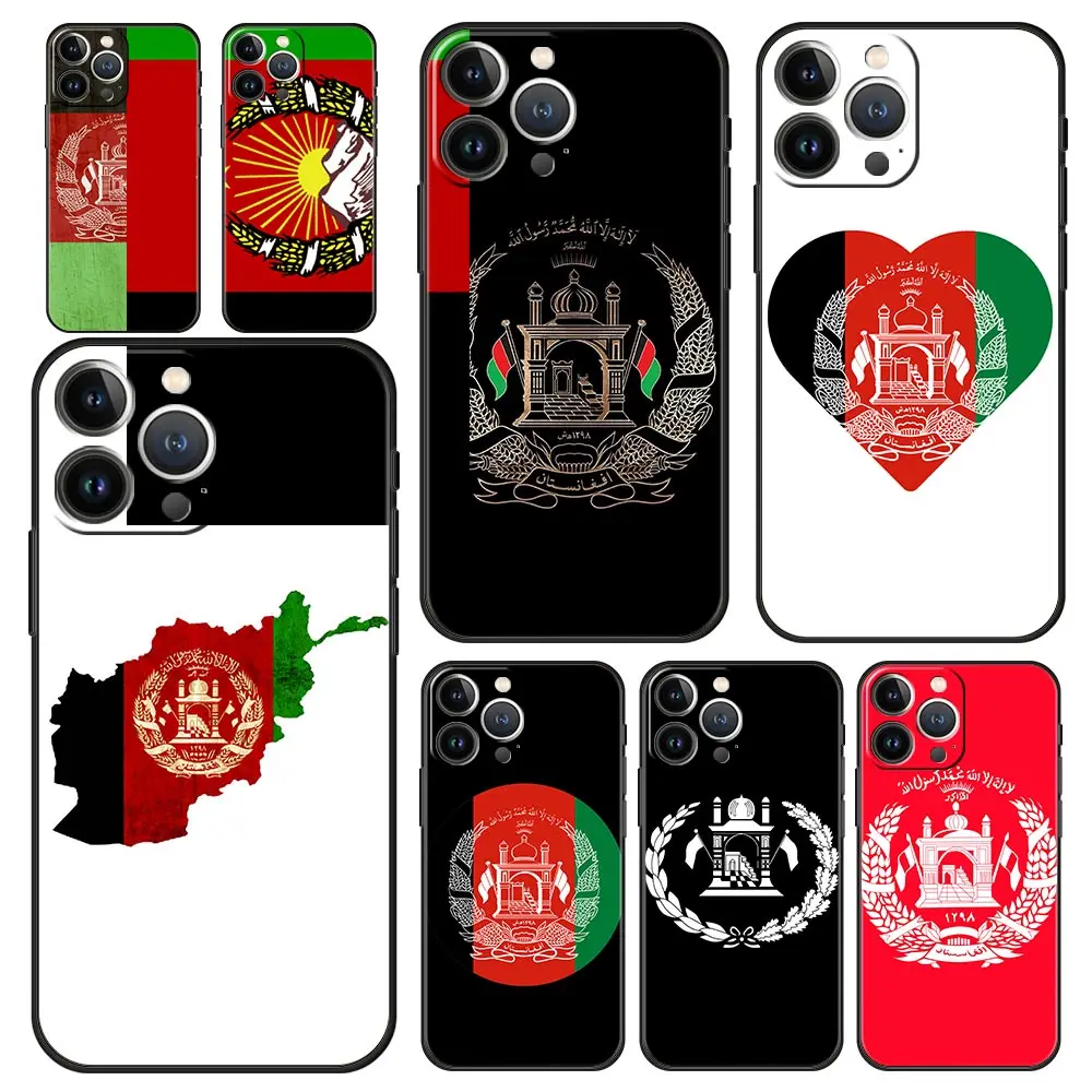 Comprar Funda de teléfono de lujo con bandera afgana de Afganistán para iPhone 13 15 14 12 11 Pro MAX XR X SE XS 7 8 Plus iPhone13 15 14 carcasa negra