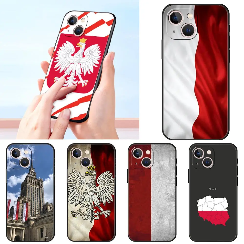 Funda de teléfono de lujo con bandera polaca para iPhone 17 Air 16 Plus 13 15 14 12 11 Pro MAX 7 8 SE, funda negra de TPU suave - imagen 1