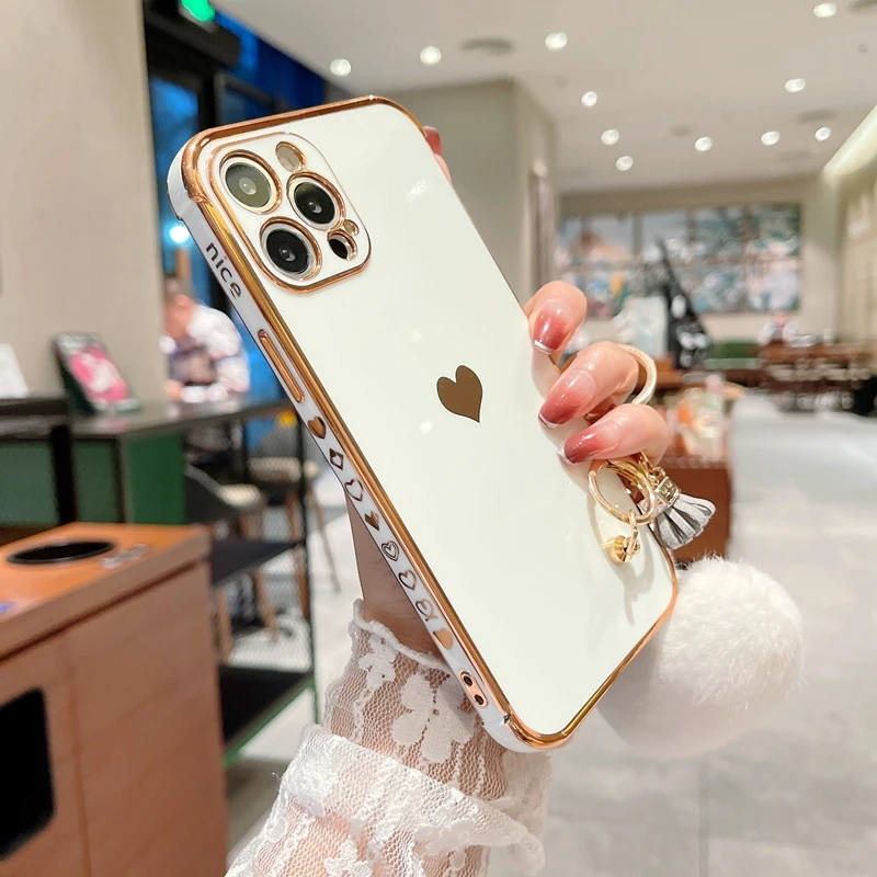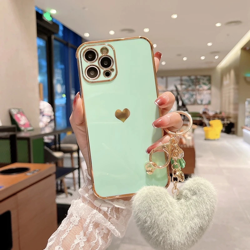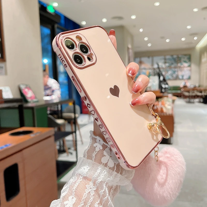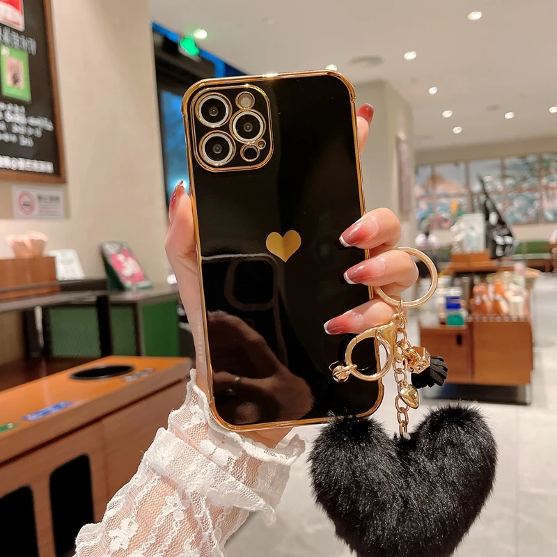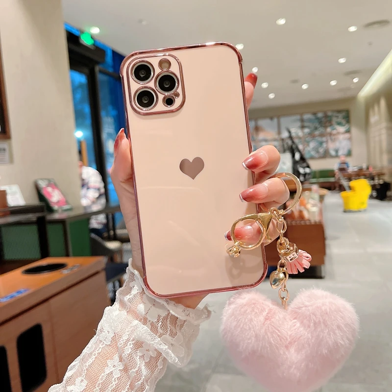 Funda de teléfono de lujo con diseño de corazón de amor para iPhone, carcasa trasera de parachoques colgante para modelos 11, 12, 13 Pro Max, XS, X, XR, 7, 8 Plus, SE 2020