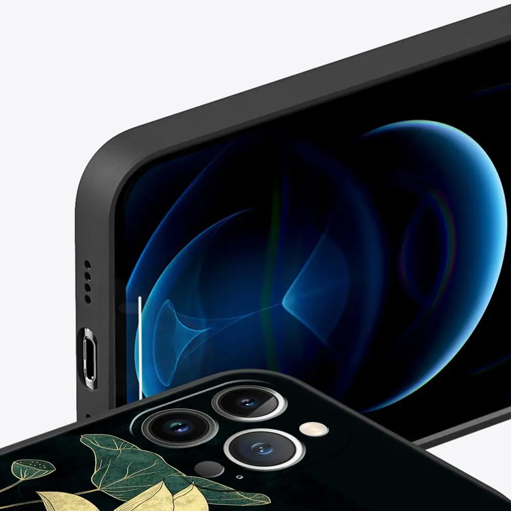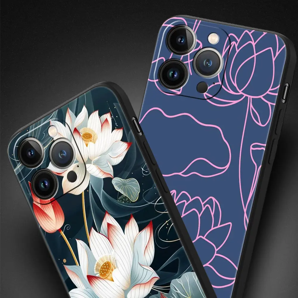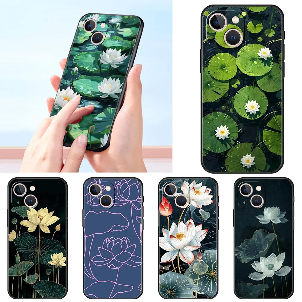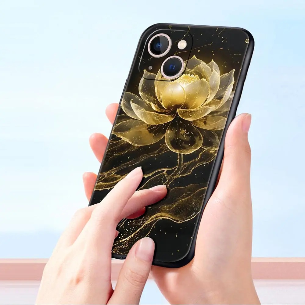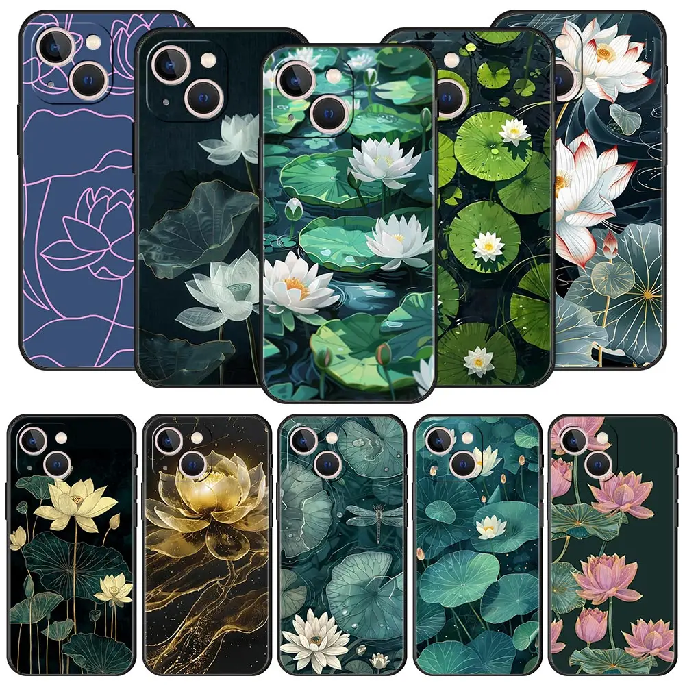 Comprar Funda de teléfono de lujo con diseño de loto para iPhone 17 Air 16 Plus 13 15 14 12 11 Pro MAX 7 8 SE, funda negra de TPU suave