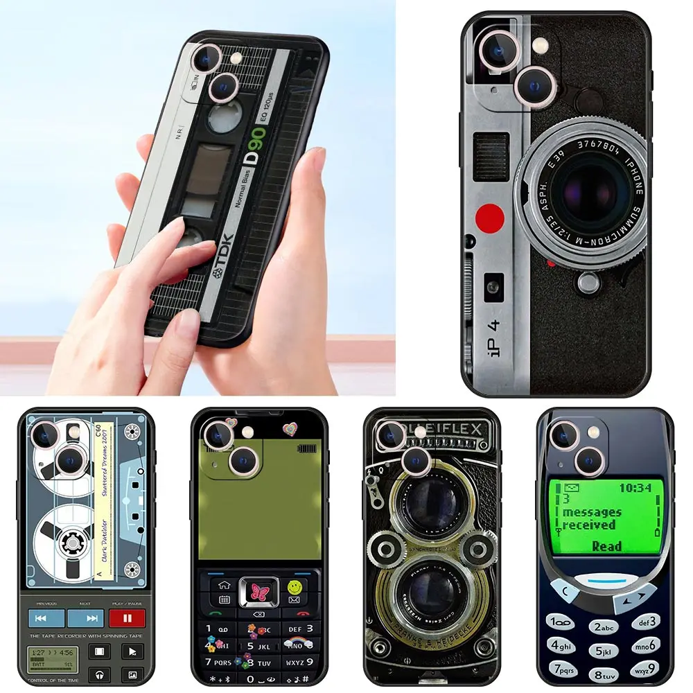 Comprar Funda de teléfono de lujo de estilo Retro con cinta de casete Vintage para iPhone 13 15 14 12 11 Pro MAX XR X SE XS 7 8 Plus, funda negra de silicona
