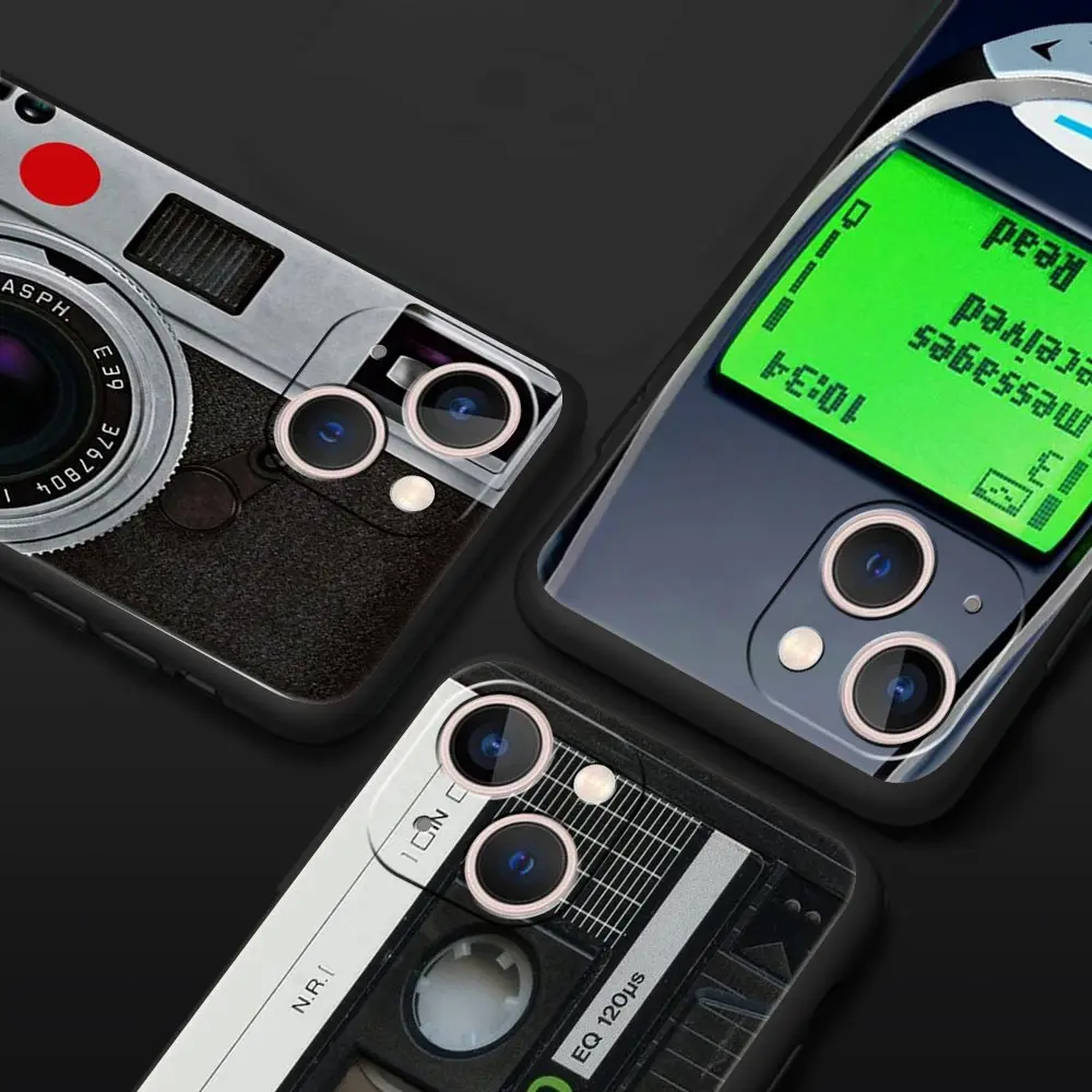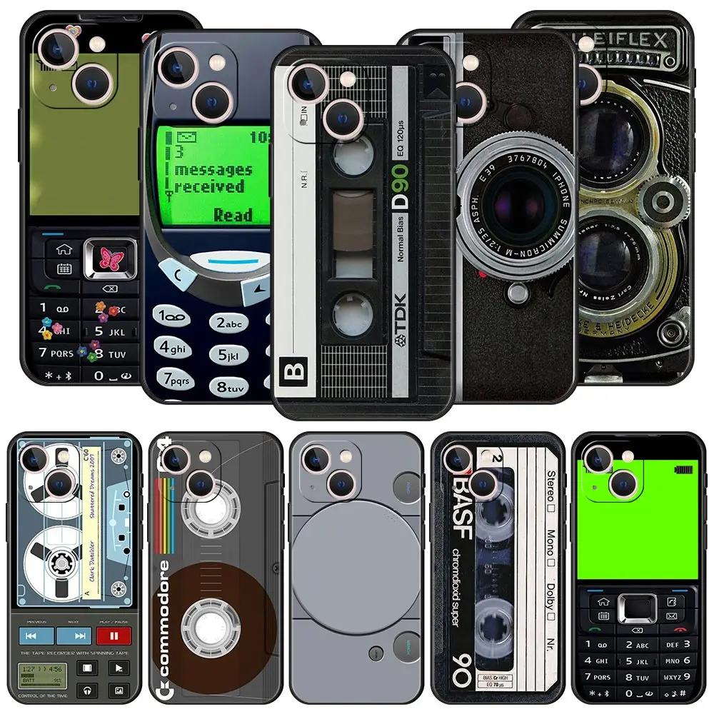 Comprar Funda de teléfono de lujo de estilo Retro con cinta de casete Vintage para iPhone 13 15 14 12 11 Pro MAX XR X SE XS 7 8 Plus, funda negra de silicona