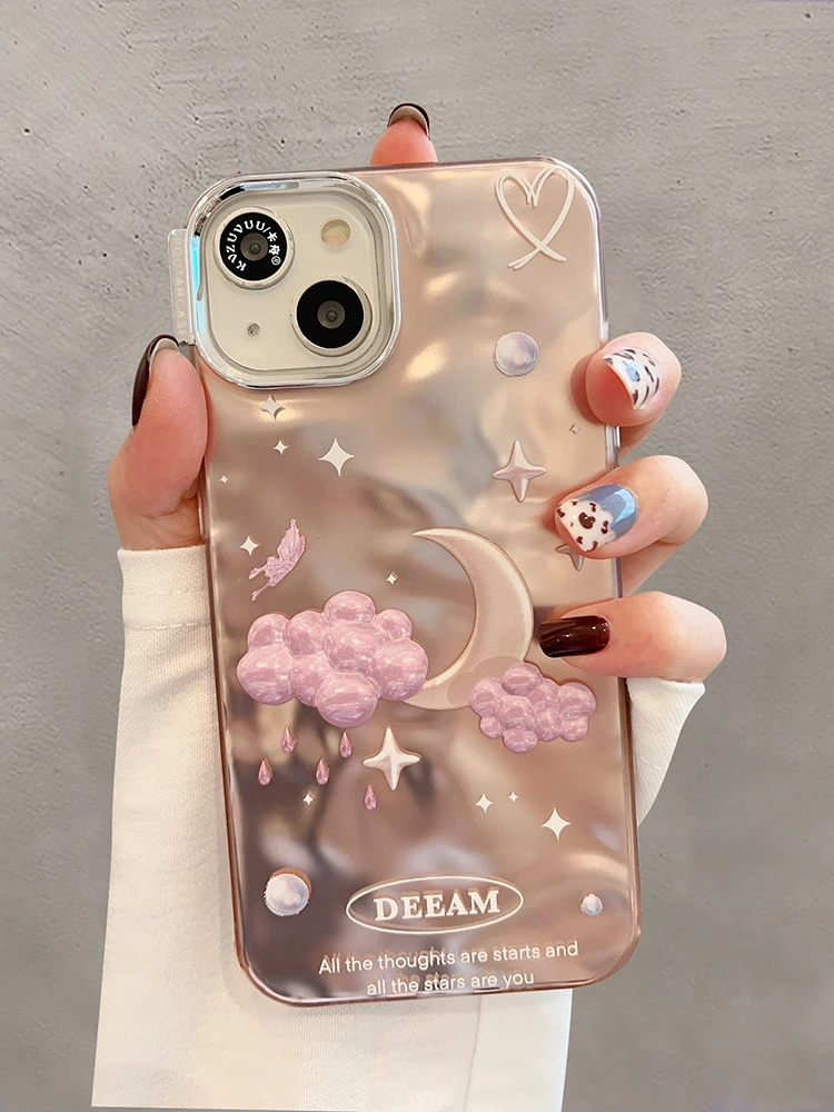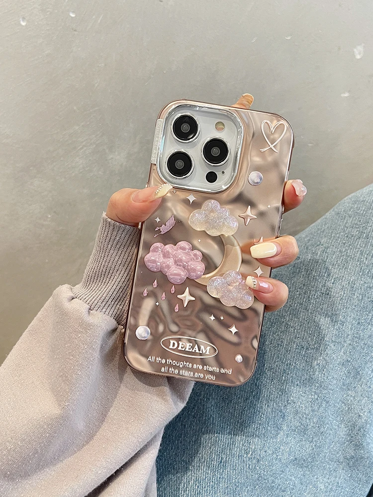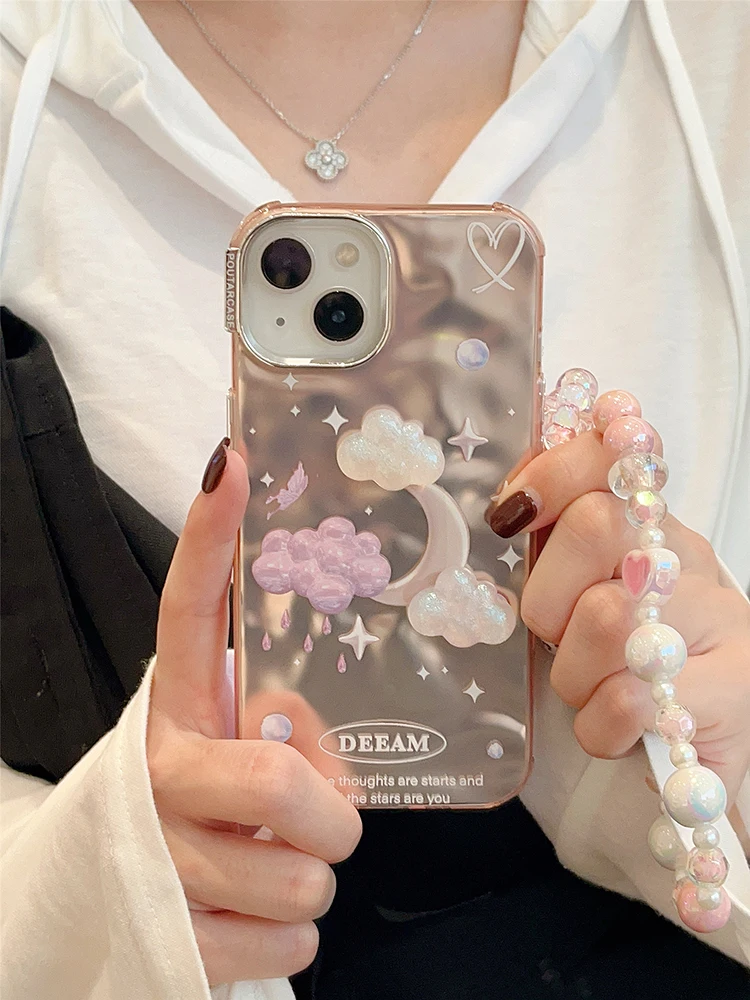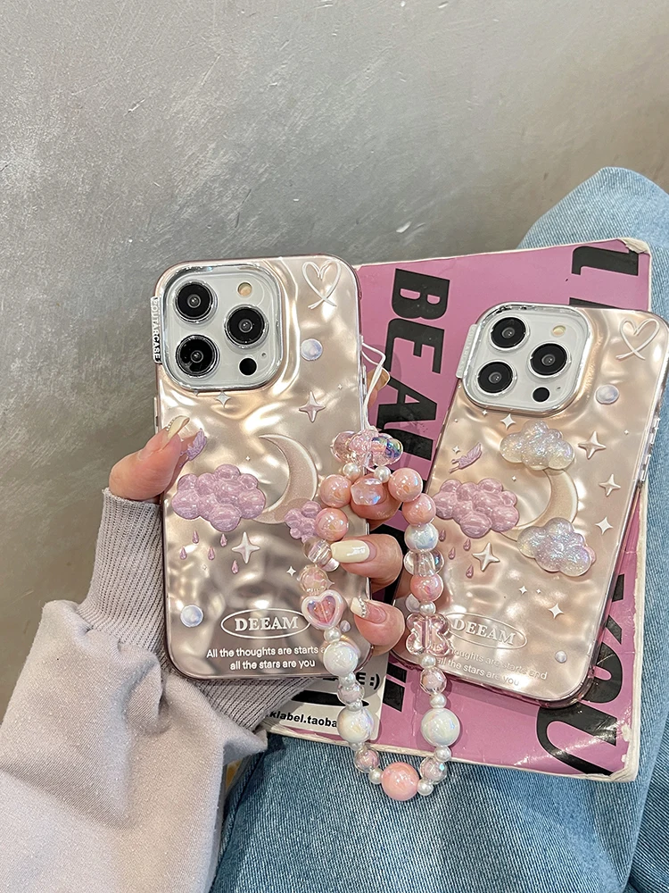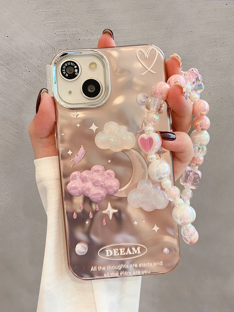 Comprar Funda de teléfono de lujo con nubes de estrellas de ensueño para iPhone 14 Pro Max 13 11 12, carcasa trasera con cadena chapada en plata a prueba de golpes