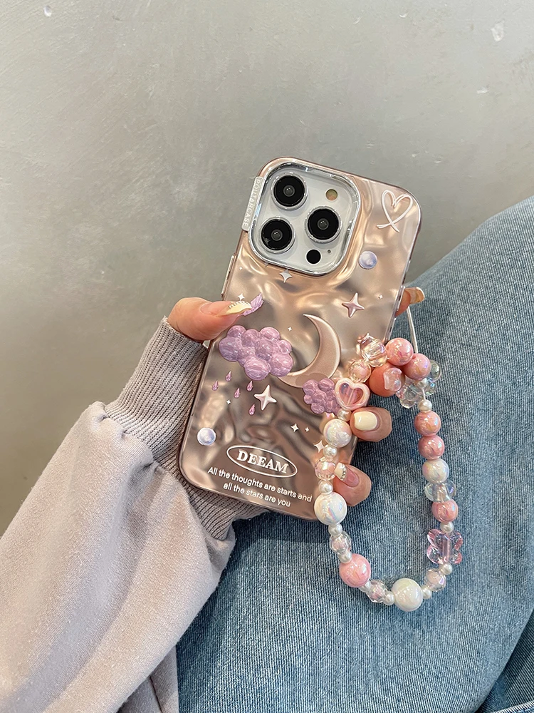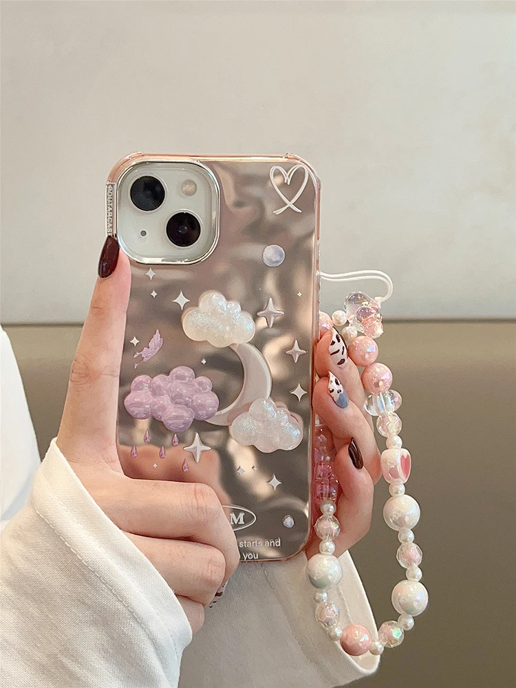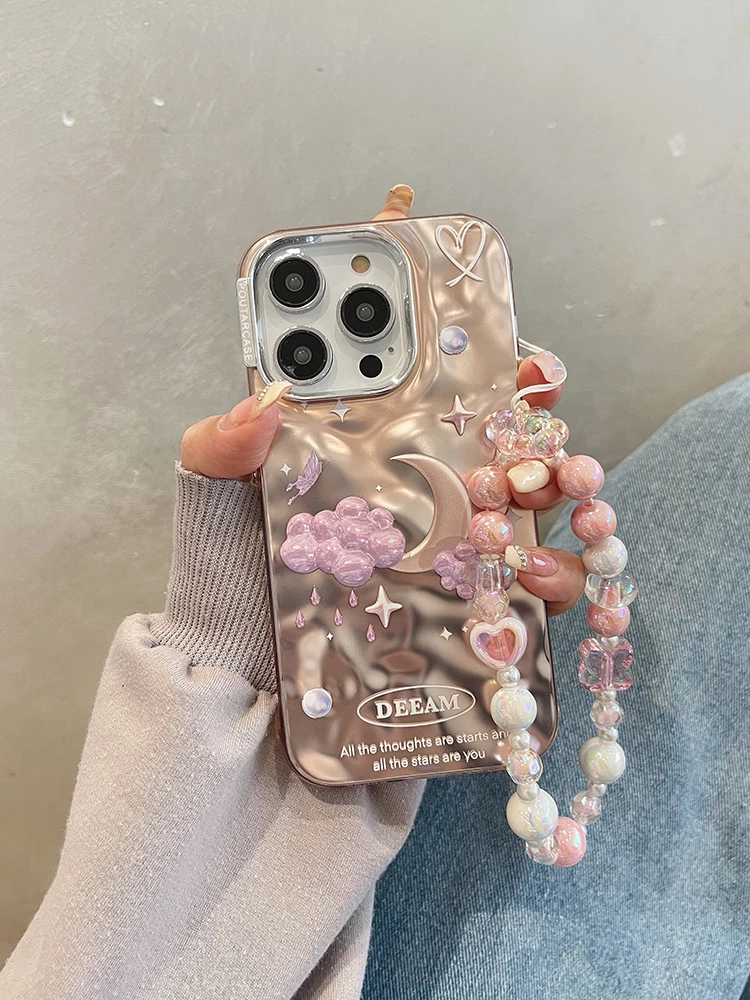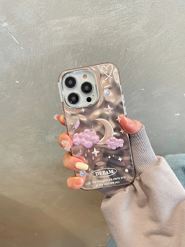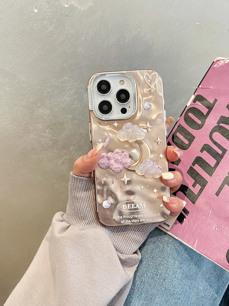 Comprar Funda de teléfono de lujo con nubes de estrellas de ensueño para iPhone 14 Pro Max 13 11 12, carcasa trasera con cadena chapada en plata a prueba de golpes