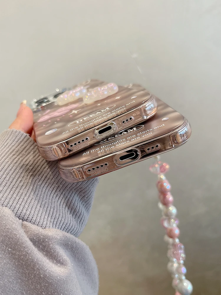 Funda de teléfono de lujo Dreamy Stars Clouds para iPhone 14 Pro Max 13 11 12, funda trasera con cadena plateada a prueba de golpes
