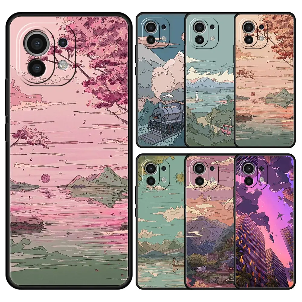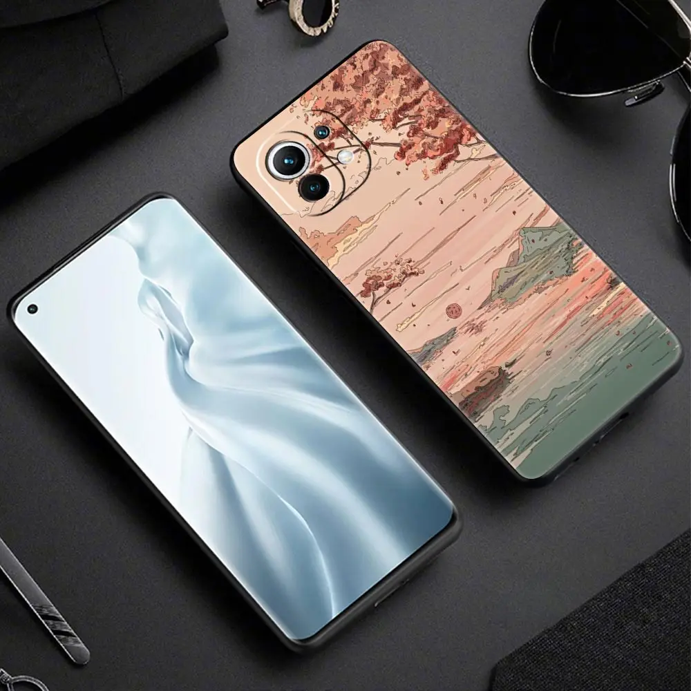 Funda de teléfono de lujo con paisaje de puesta de sol de Japón para Xiaomi 12T Pro 12 13 11 Ultra Mi Note 10 Lite 10T 5G 11X Pro 11T 9T, funda suave