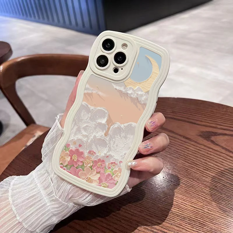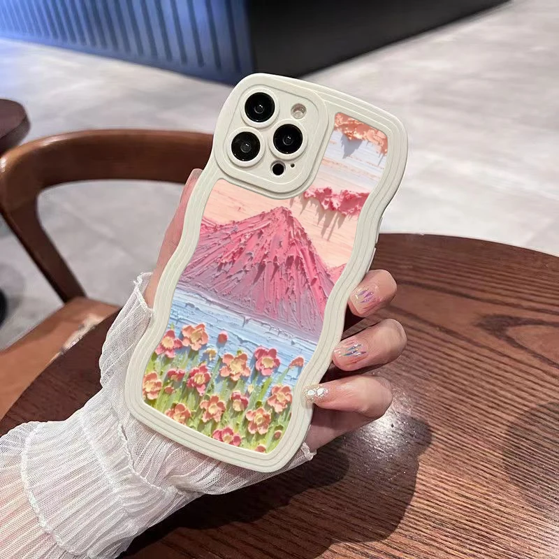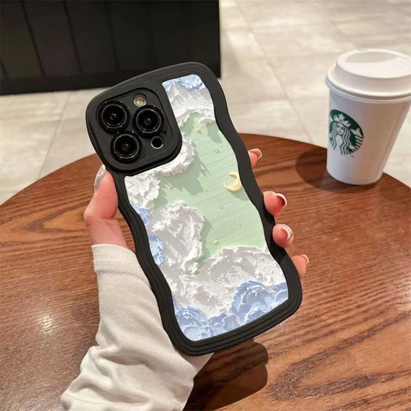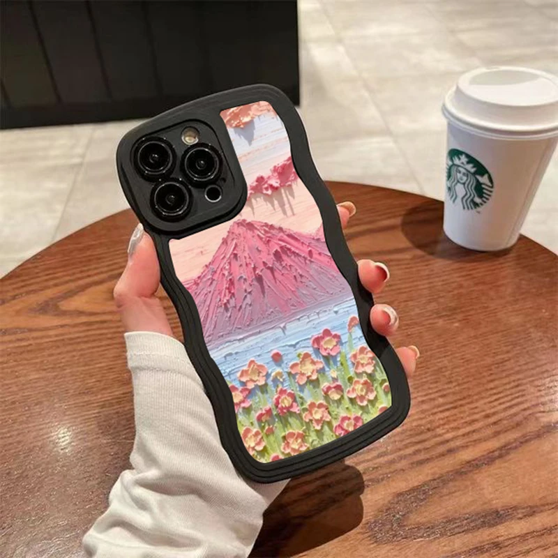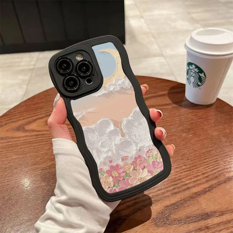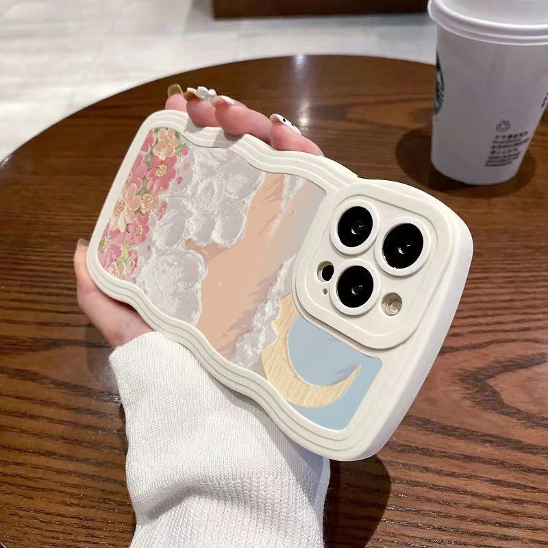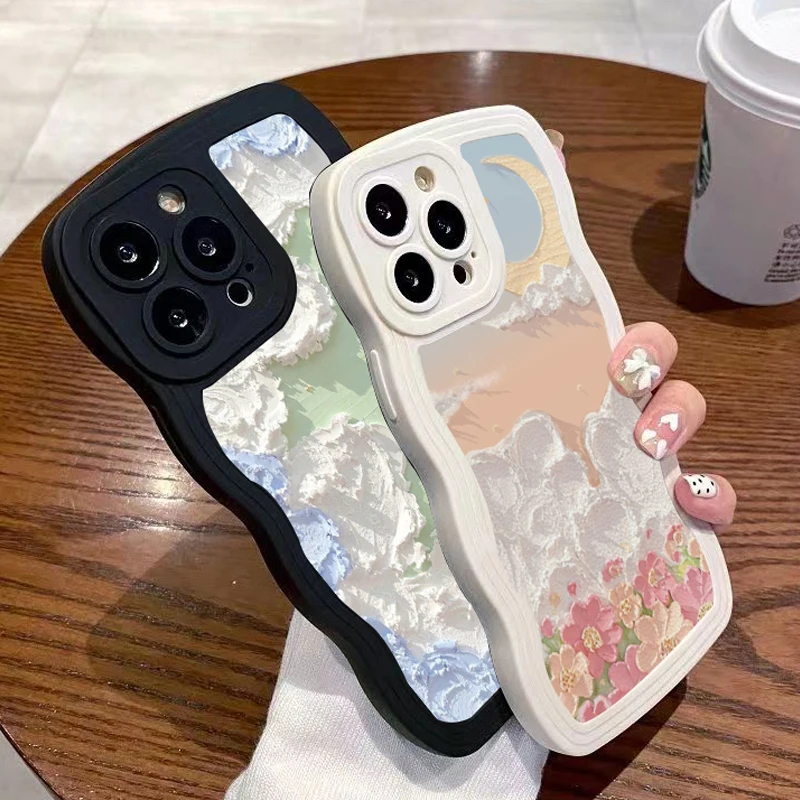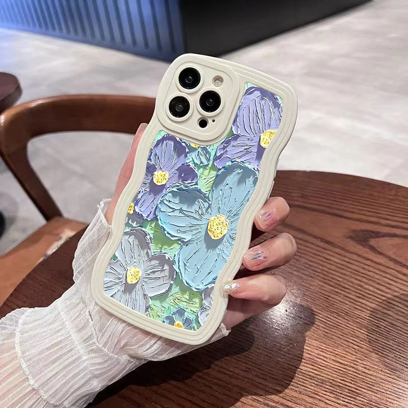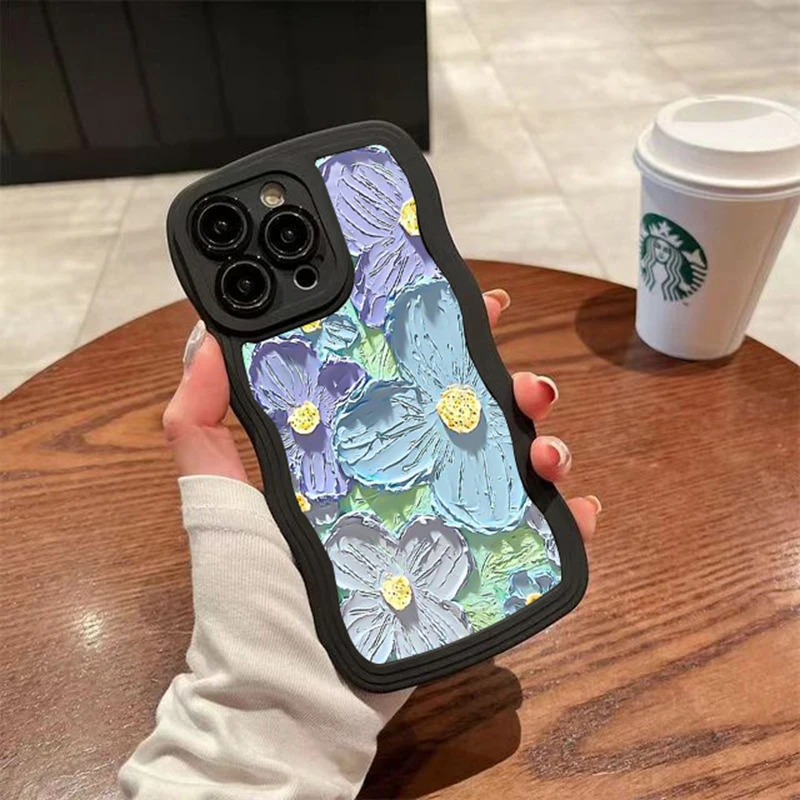 Funda de teléfono ondulada con patrón de flores 3D de lujo para iPhone 14 13 12 11 Pro Max X XR XS Max 7 8 14 Plus, parachoques de cubierta suave de Color sólido