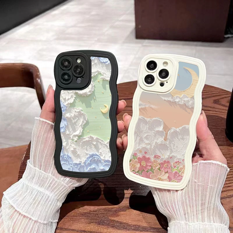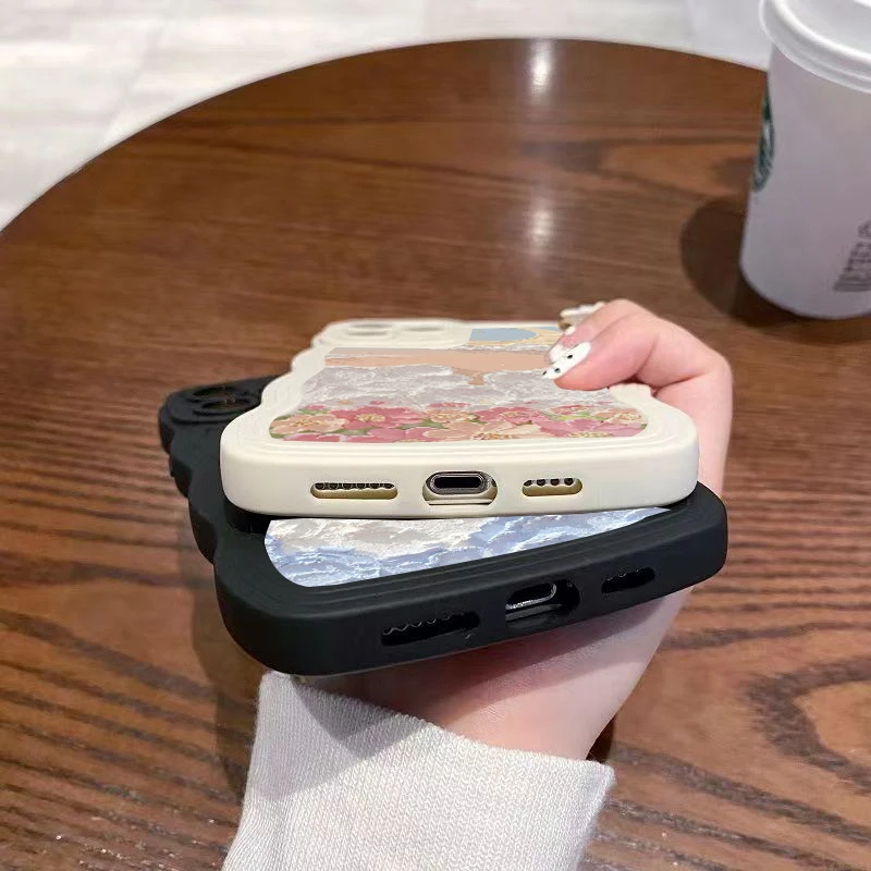 Funda de teléfono ondulada con patrón de flores 3D de lujo para iPhone 14 13 12 11 Pro Max X XR XS Max 7 8 14 Plus, parachoques de cubierta suave de Color sólido
