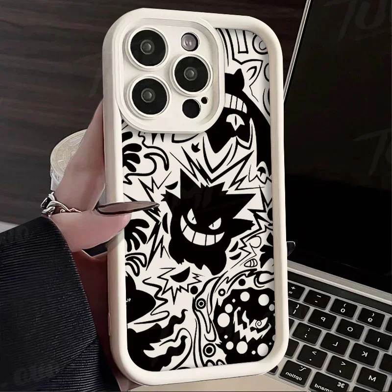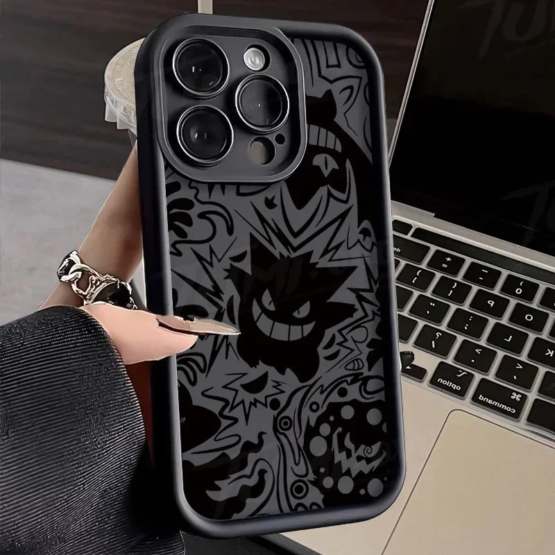 Comprar Funda de teléfono de lujo Pokemon Gengar para iPhone 14 15 Pro Max 13 12 11 X XS XR 7 8 Plus SE 2020 cubierta trasera de silicona líquida