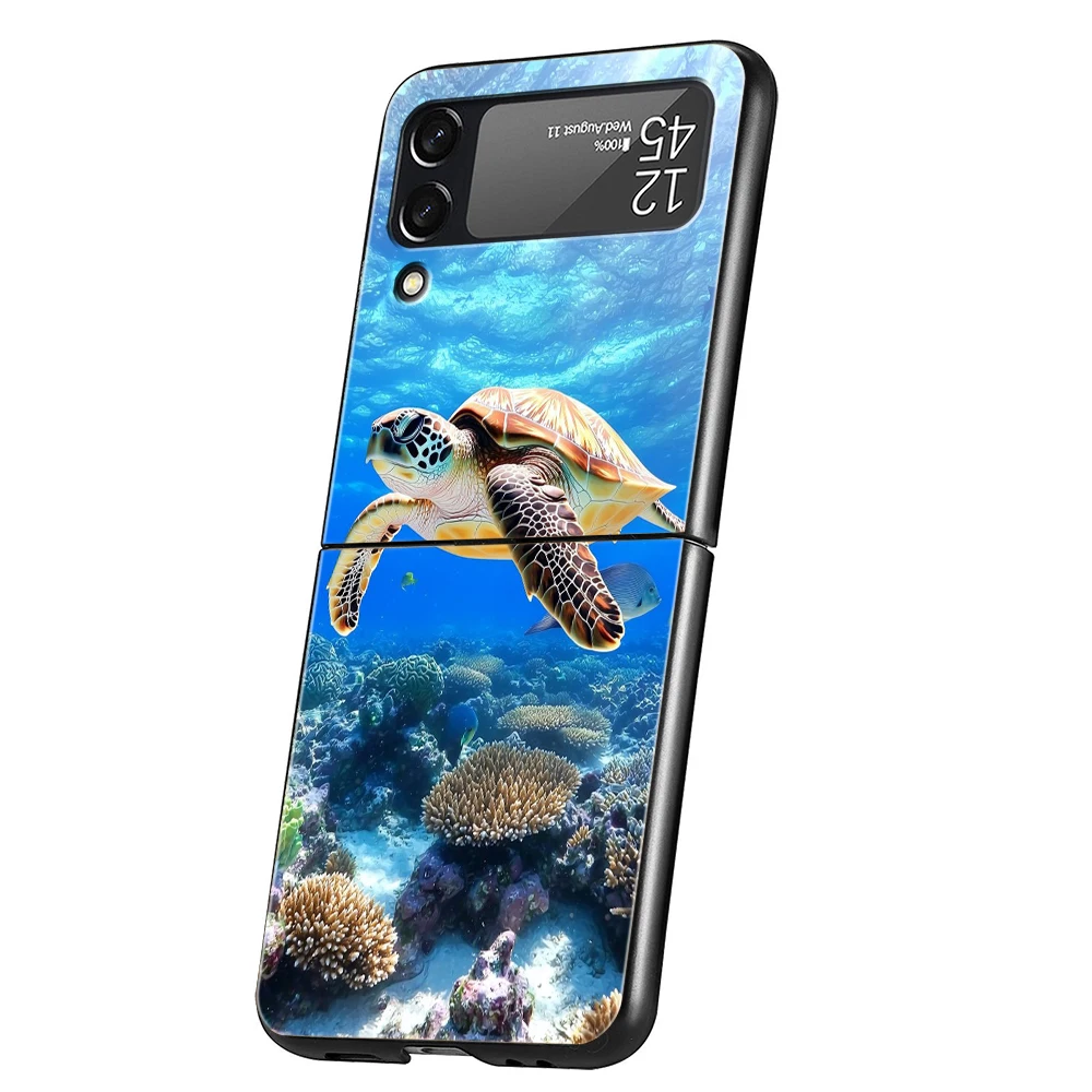 Comprar Funda de teléfono de lujo para Samsung Galaxy Z Flip 3 4 5 6 PC plegable dura para Samsung Z Flip3 Flip4 Flip5 funda Cool Ocean Turtle