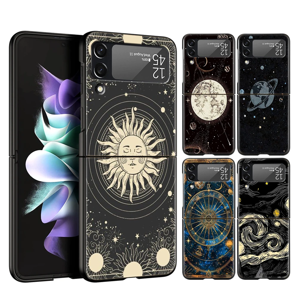 Comprar Funda de teléfono de lujo para Samsung Galaxy Z Flip 3 4 5 6 PC plegable dura para Samsung Z Flip4 Flip5 cubierta Starlit sky planet space art