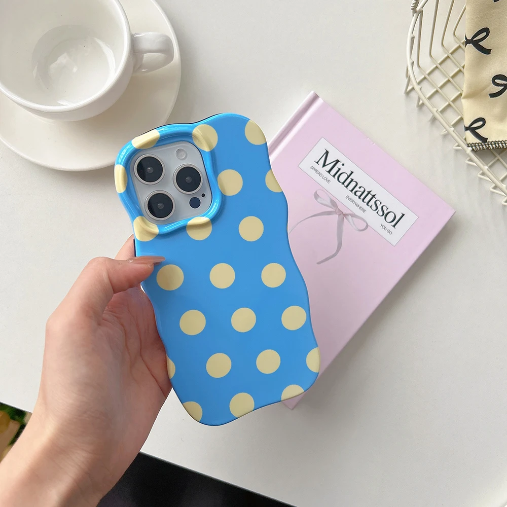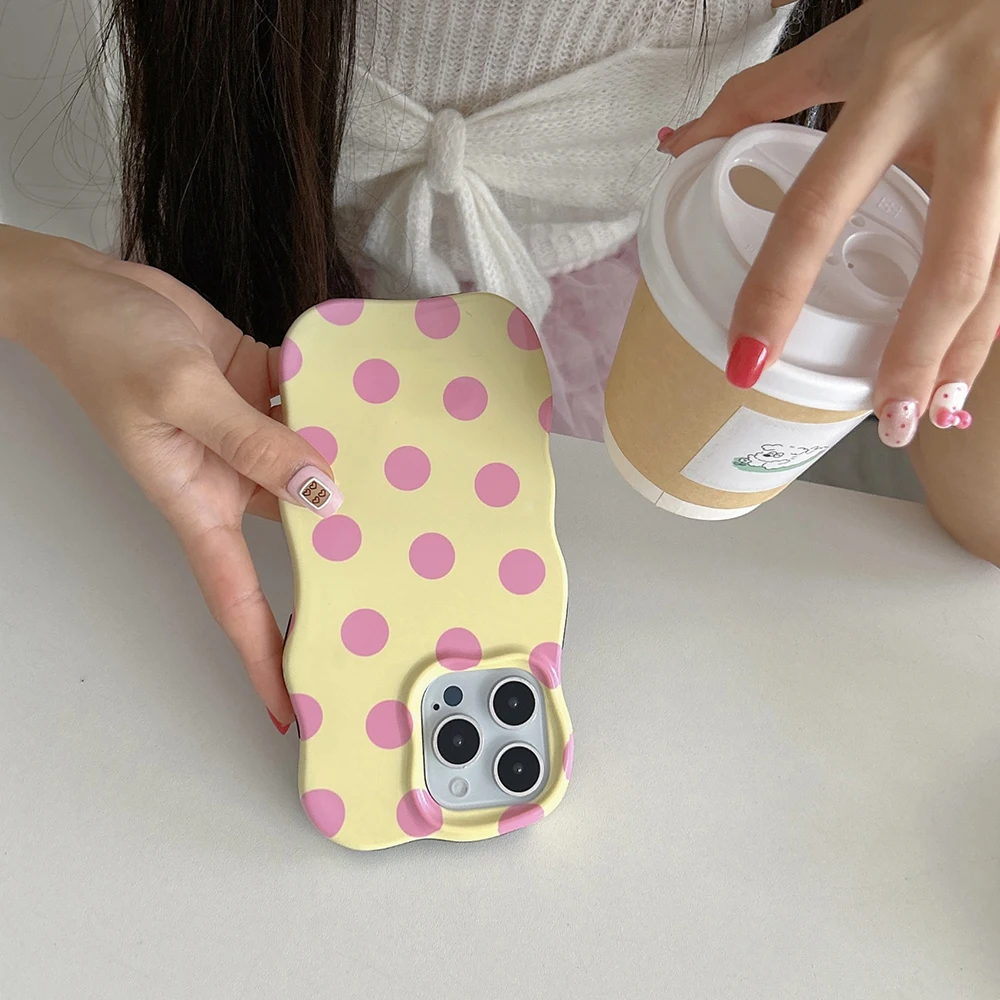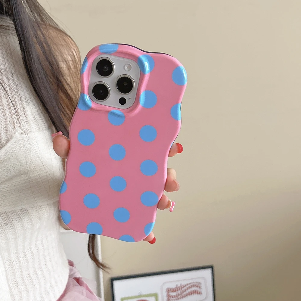 Funda de teléfono bonita y brillante con lunares para iPhone 16 15 14 13 Pro Max Iphone 16, cubierta trasera con bordes ondulados protectores a prueba de golpes