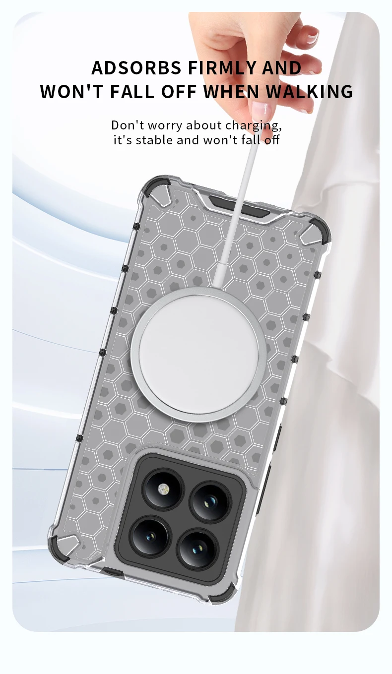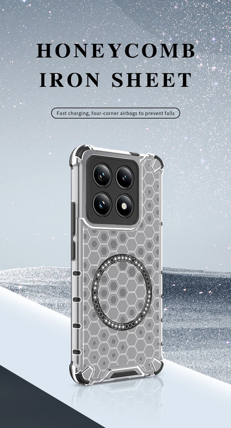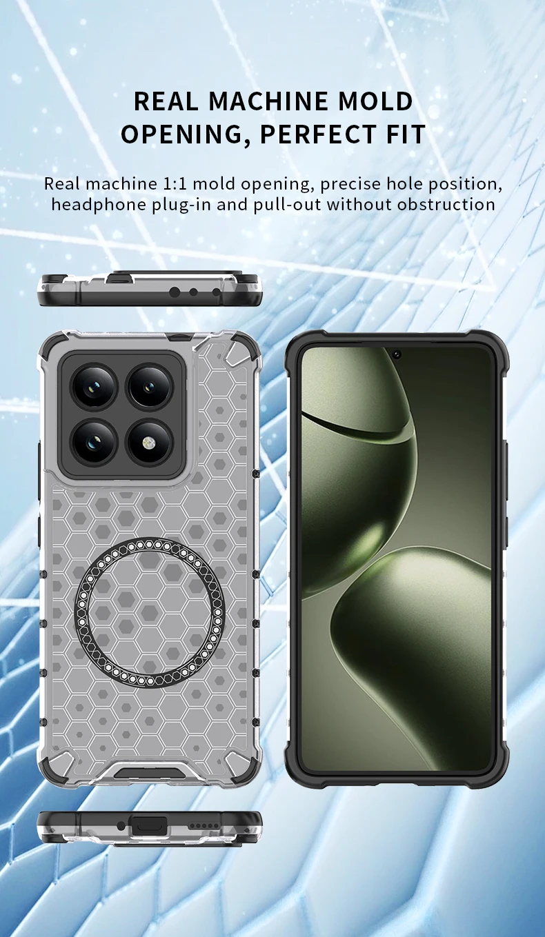 Funda de teléfono magnética 2 en 1 con protección completa a prueba de golpes para Xiaomi Mi 15 Pro 14T 14TPro, funda trasera translúcida con armadura de nido de miel
