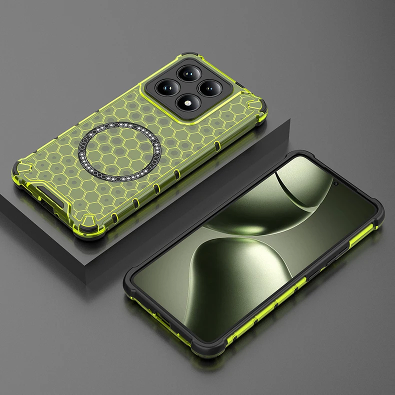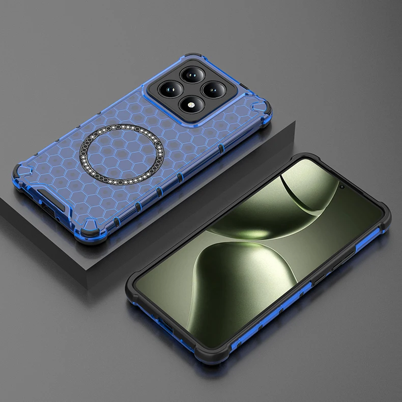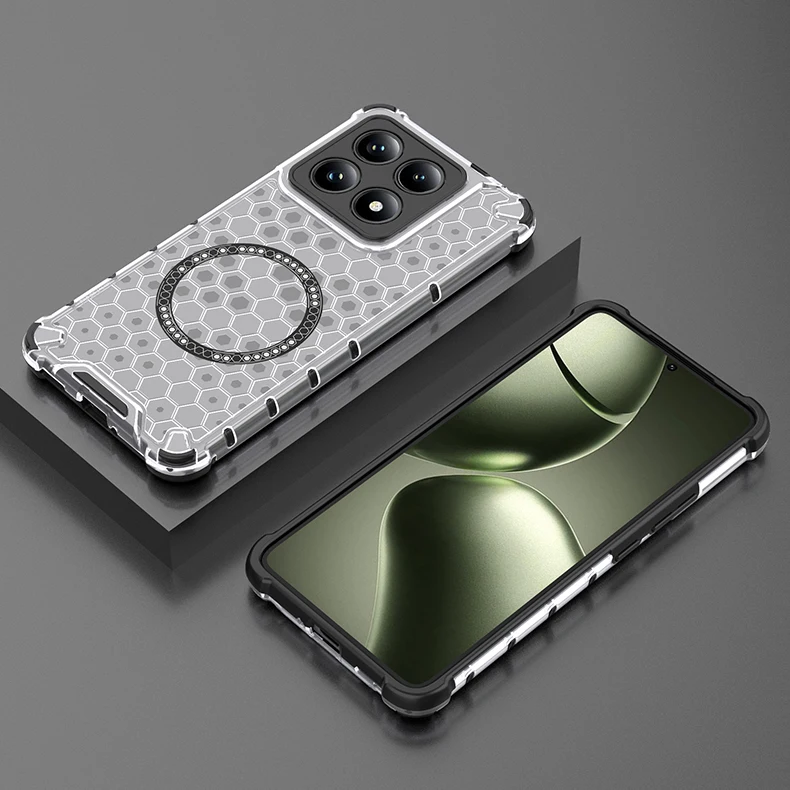 Funda de teléfono magnética 2 en 1, protección completa a prueba de golpes, para Xiaomi Mi 15 Pro 14T 14TPro, funda translúcida HoneyComb, armadura, funda trasera