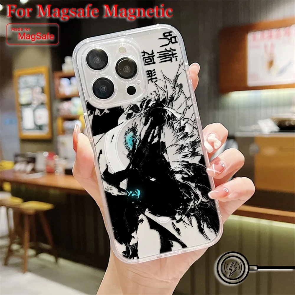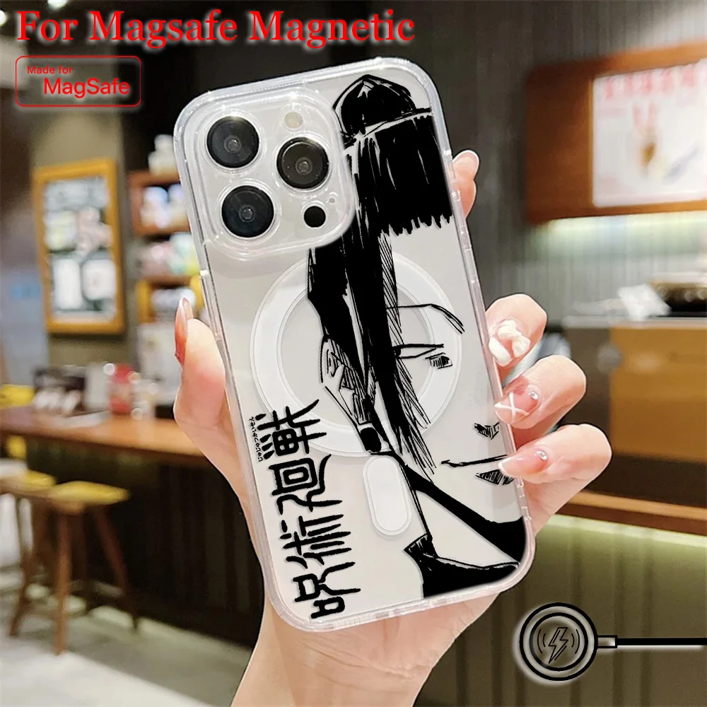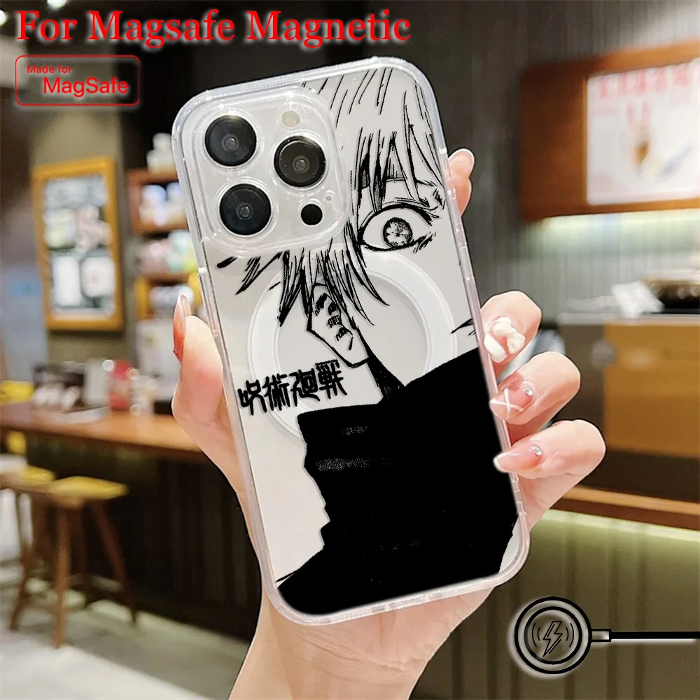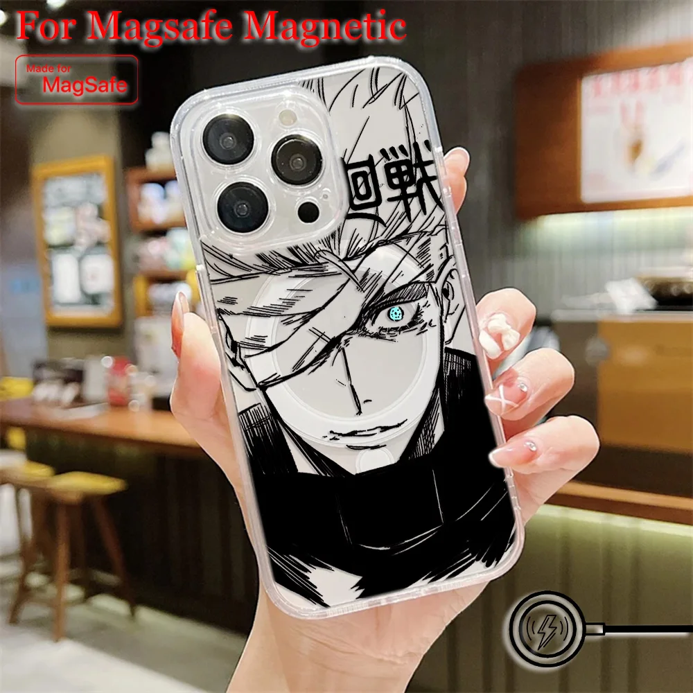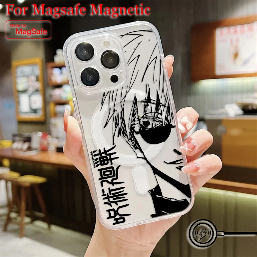 Comprar Funda de teléfono magnética de Anime Jujutsu Kaisen Magsafe para iPhone 16 15 14 13 12 11 8 7 Plus Pro Max X XR XSMax, funda de Tpu transparente suave