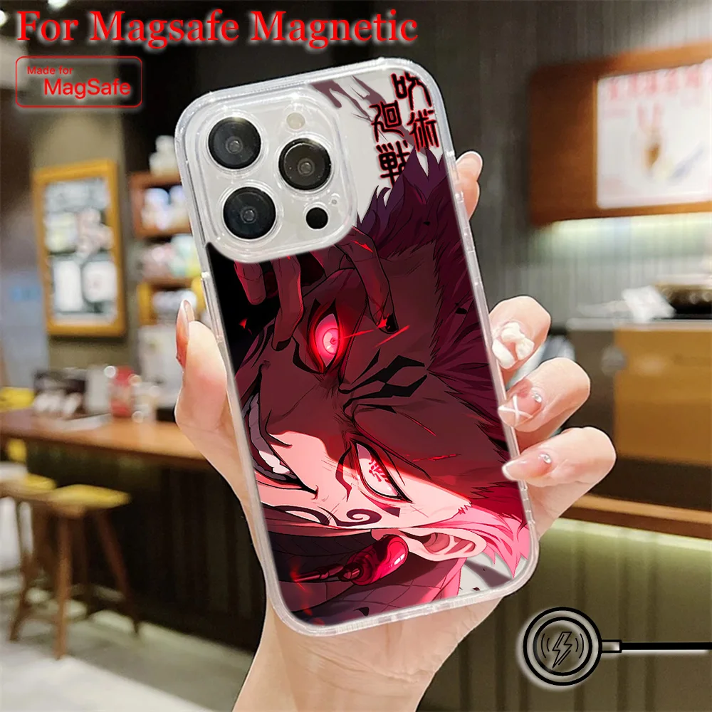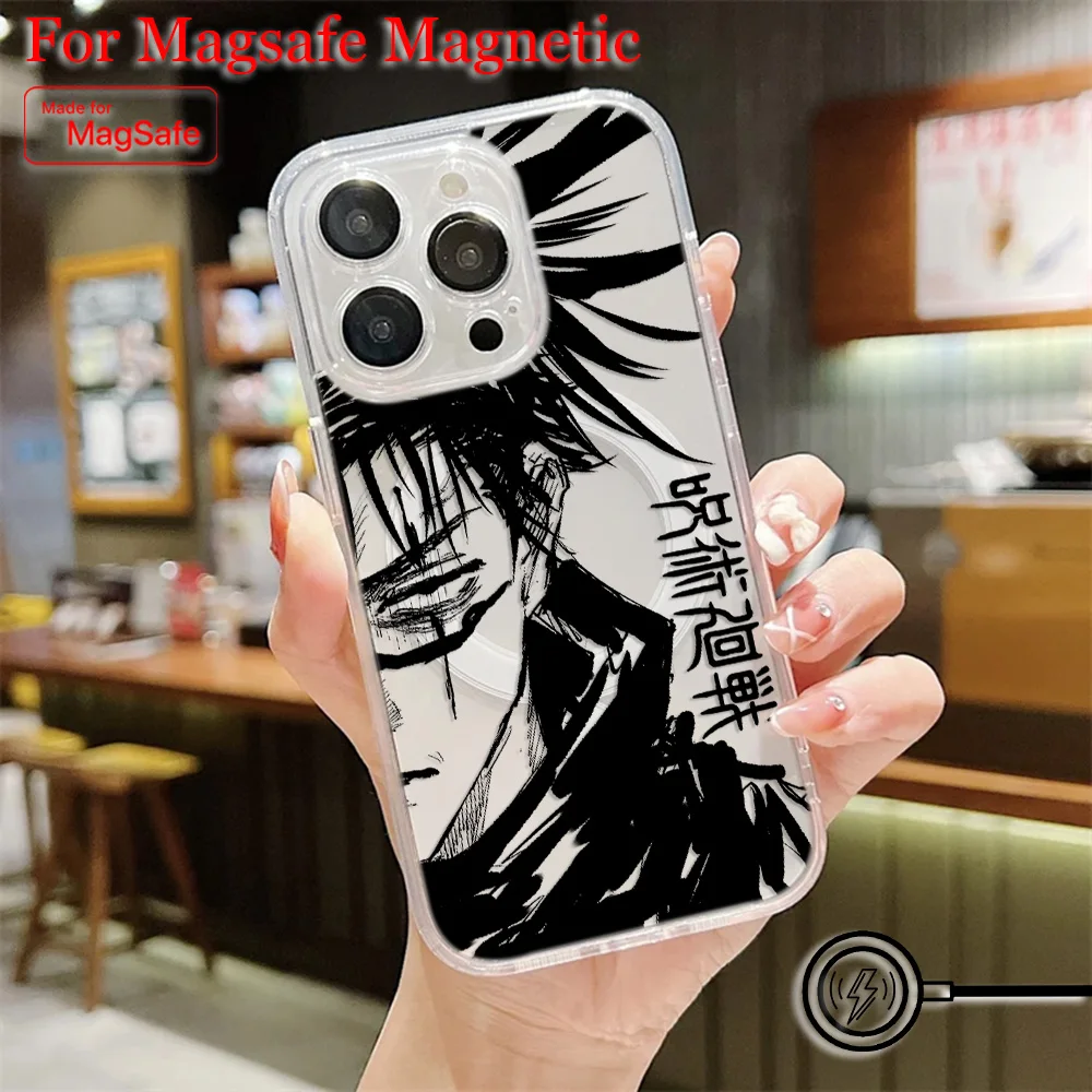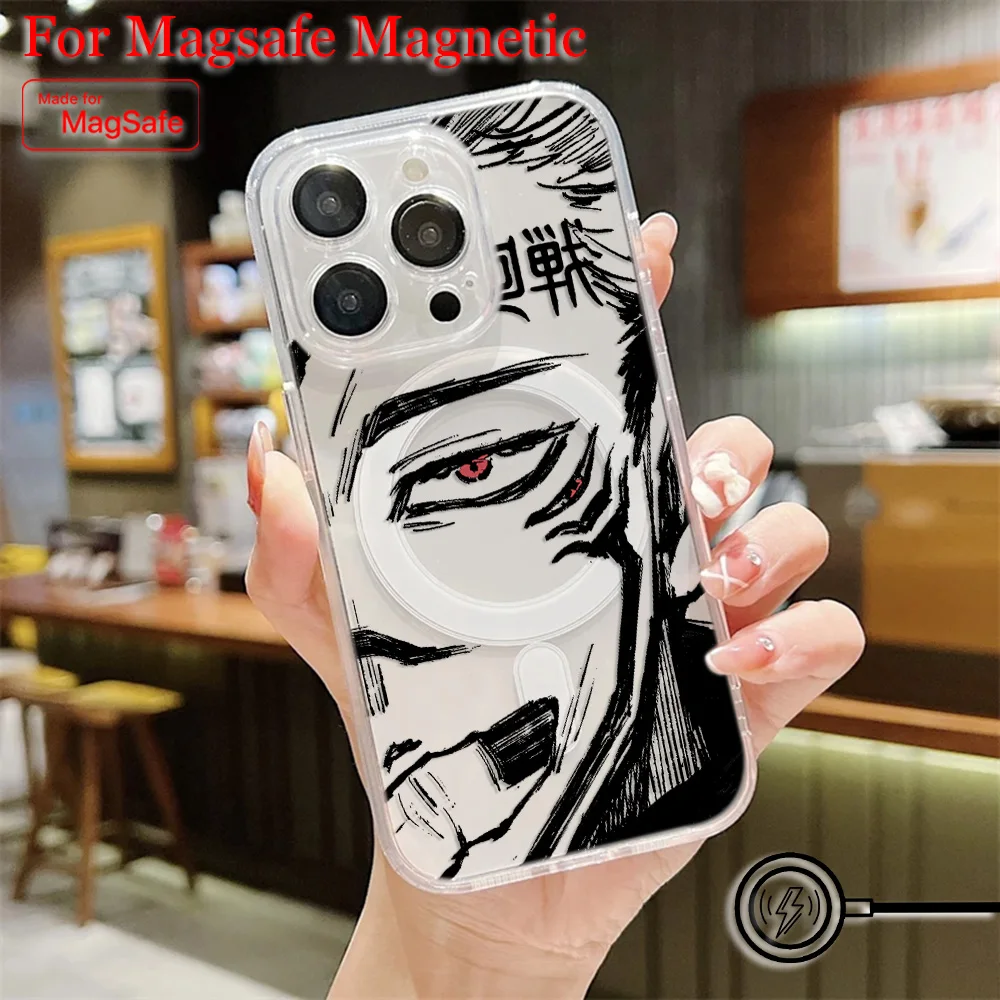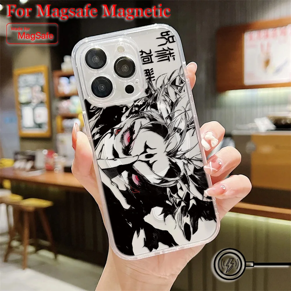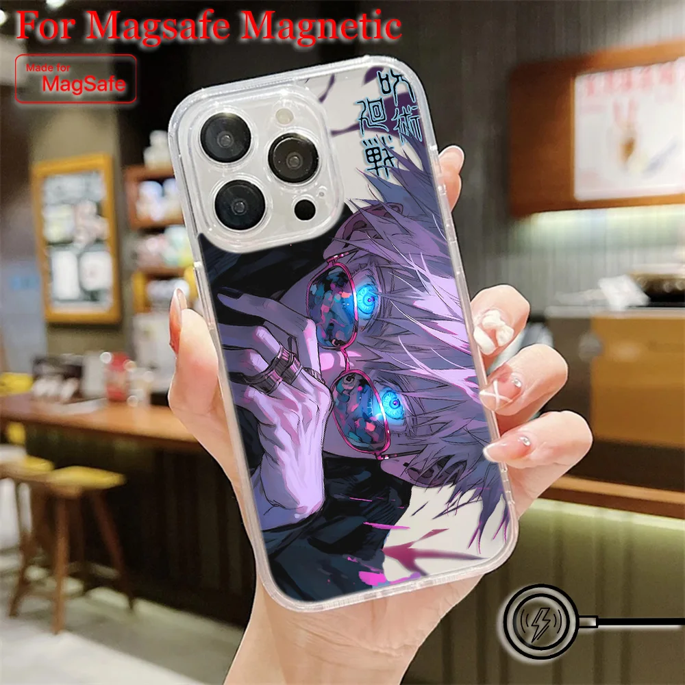 Comprar Funda de teléfono magnética de Anime Jujutsu Kaisen Magsafe para iPhone 16 15 14 13 12 11 8 7 Plus Pro Max X XR XSMax, funda de Tpu transparente suave