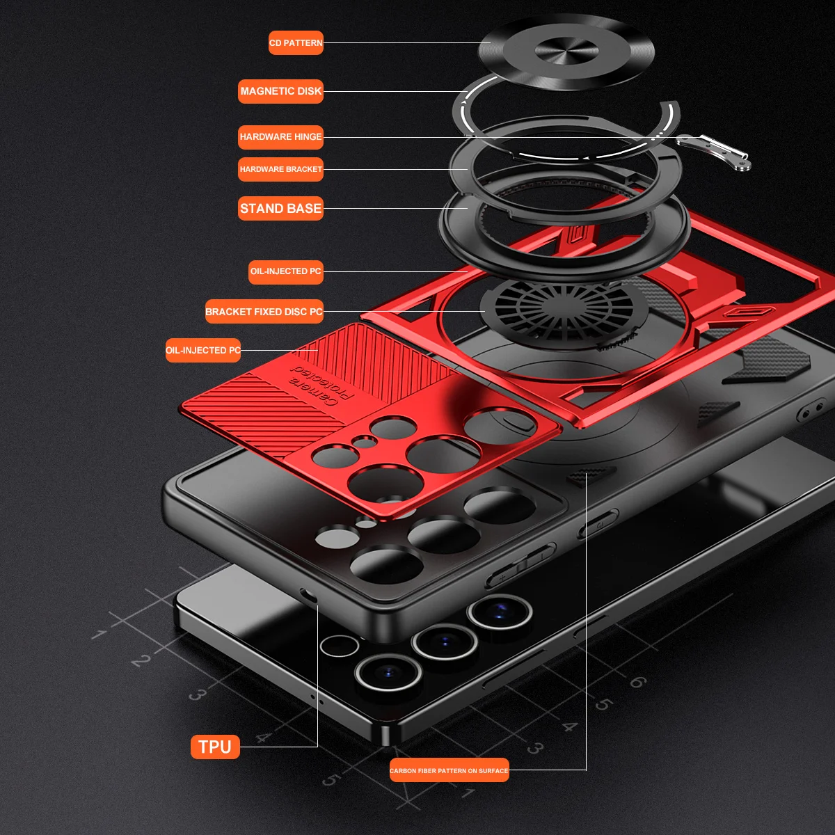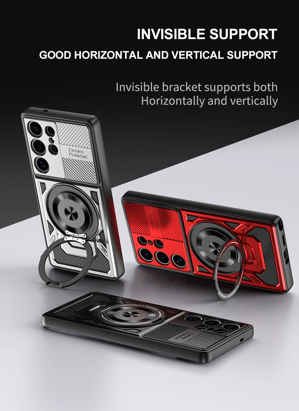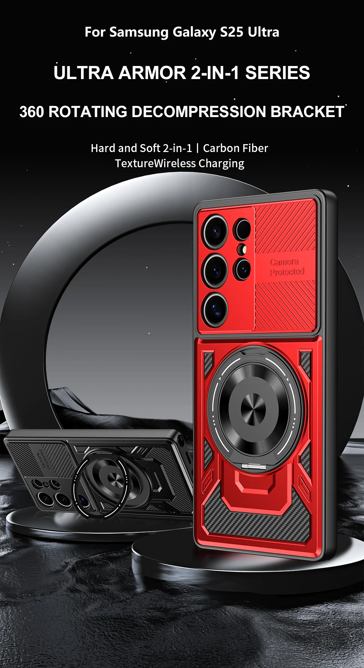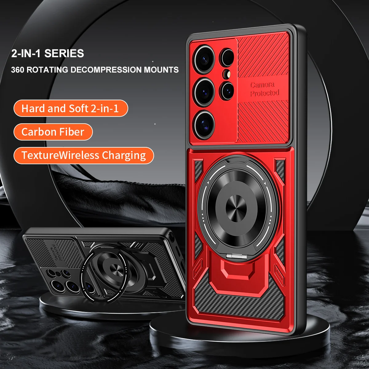 Funda de teléfono magnética con armadura giratoria de lujo 360 para Samsung S25 Ultra S24 Plus S23 A26 A17 A07 cubierta de carga inalámbrica a prueba de golpes